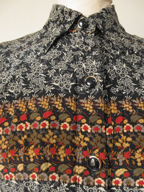 古着♪レトロ・Vintage黒小花柄フォークロアワンピ♪70s60s70年代60年代ヴィンテージヒッピーナチュ昭和ロマンガーリーアンティーク即決