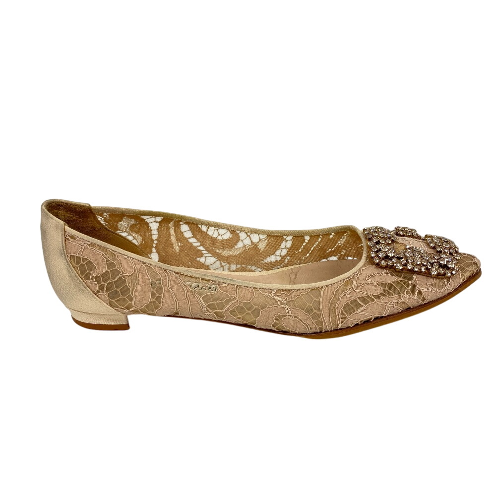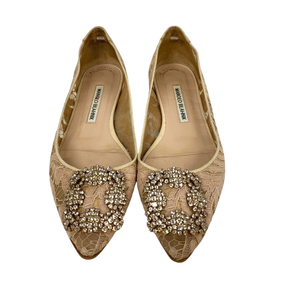 | 商品名 | MANOLO BLAHNIK/マノロブラニク ハンギシ ビジュー フラットパンプス レース ラインストーン パンプス ベージュ レディース |