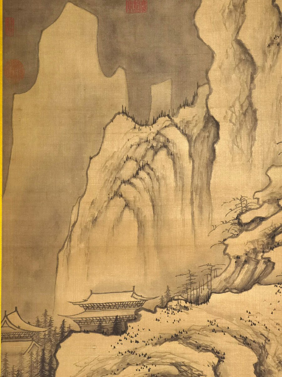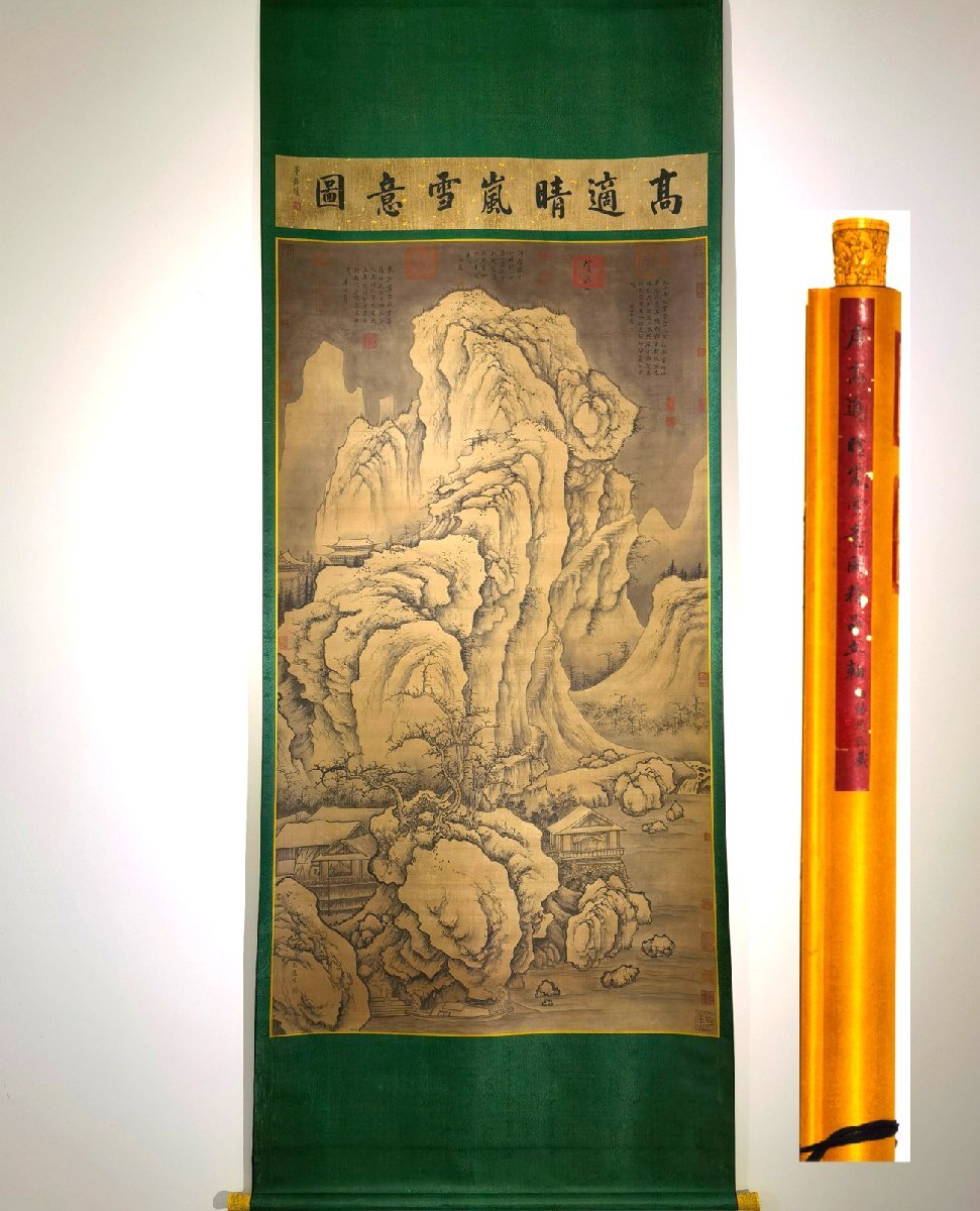 【安】中国唐時代画家「高書」絹本「晴嵐雪意図」巨大掛軸 中国画 墨寶妙品 中国書道 古美術 375 サイズ(約寸) |