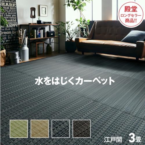 ・【仕様】サイズ:江戸間3畳(約174×261cm)、原産国:日本製(純国産)、素材:ポリプロピレン100%。ポリプロピレンとはプラスチックのひとつで軽くて傷がつきにくい丈夫な素材です。細いストロー状のポリプロピレンを、い草花ござと同じ要領で織り上げた汚れに強いカーペットです。