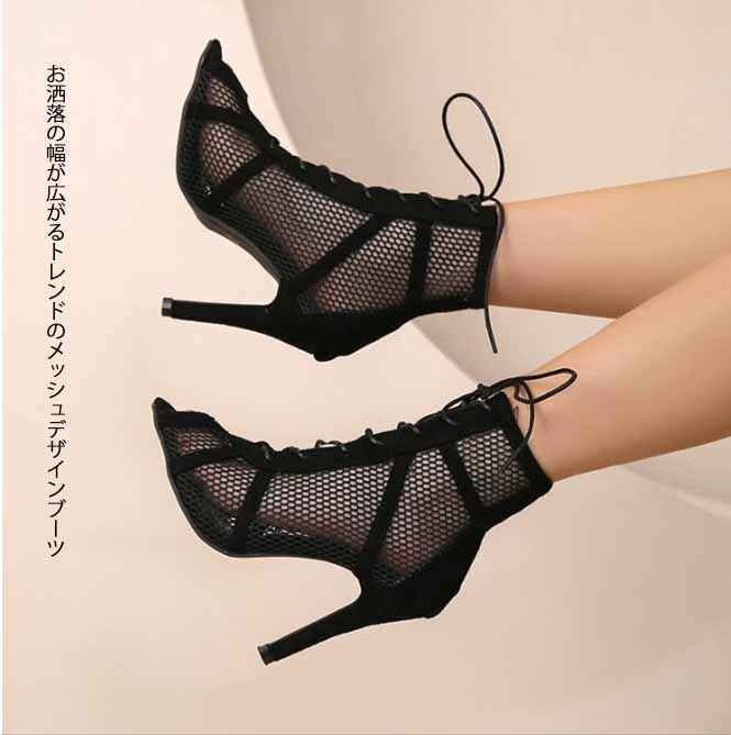 ・メッシュ&オープントゥで透け感がありブーツなのに重く見えず軽やかな印象に。