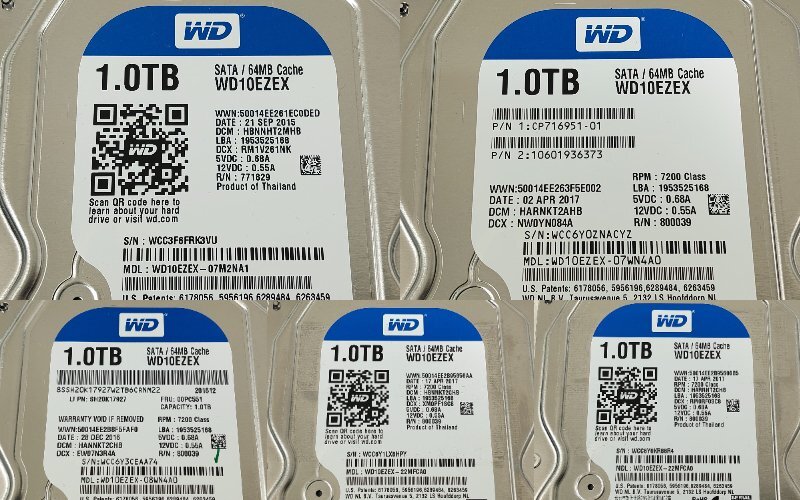●【1TB/5台】Western Digital WD Blue 5台まとめ 3.5インチ HDD Serial ATA SATA 1TB 1000GB ハードディスク 動作品【 ITS JAPAN 】