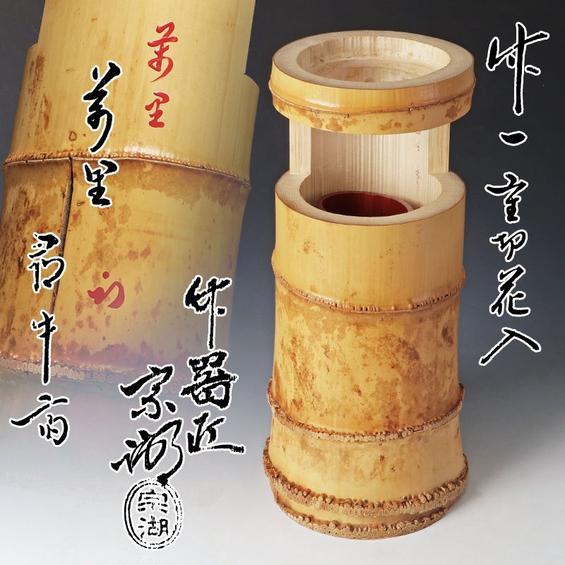 竹の質感が味わい深く、洗練された表情の中に温かみを感じる逸品です。 ★商品は尋牛斎書付、長尾宗湖下削の作品である事を保証致します。 |