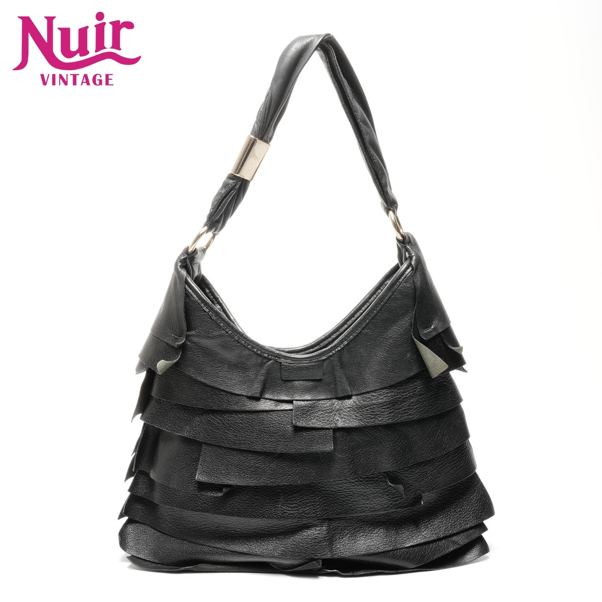 イヴ・サンローラン YVES SAINT LAURENT ショルダーバッグ レザー フリル ブラック