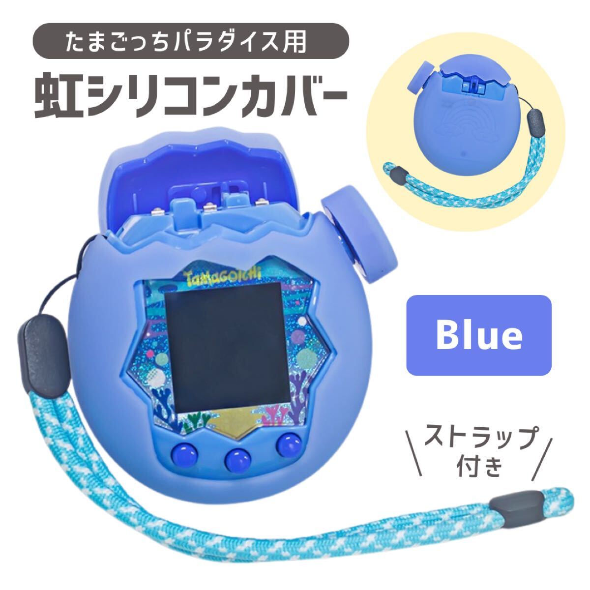 たまごっちパラダイス シリコンカバー 保護ケース ストラップ付 分離型 ブルー