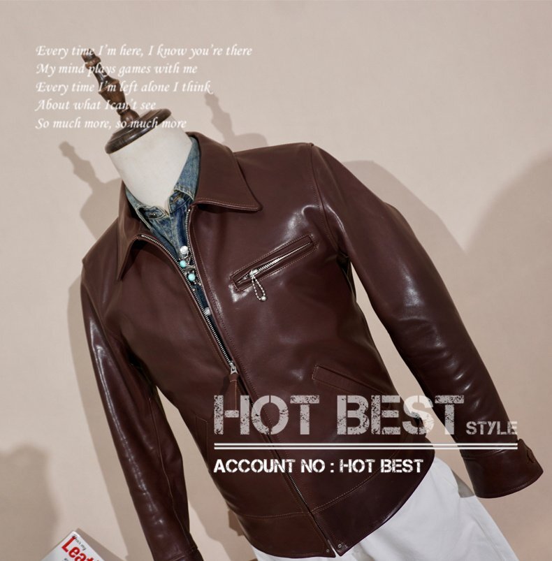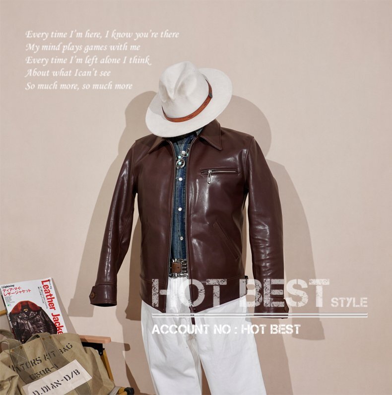 レア色 1.4mm茶芯ホースハイド 30'sスタイル シングルライダース レザージャケット トスカーナ植物鞣し革 馬革 Y1348/S~4XLサイズ指定可