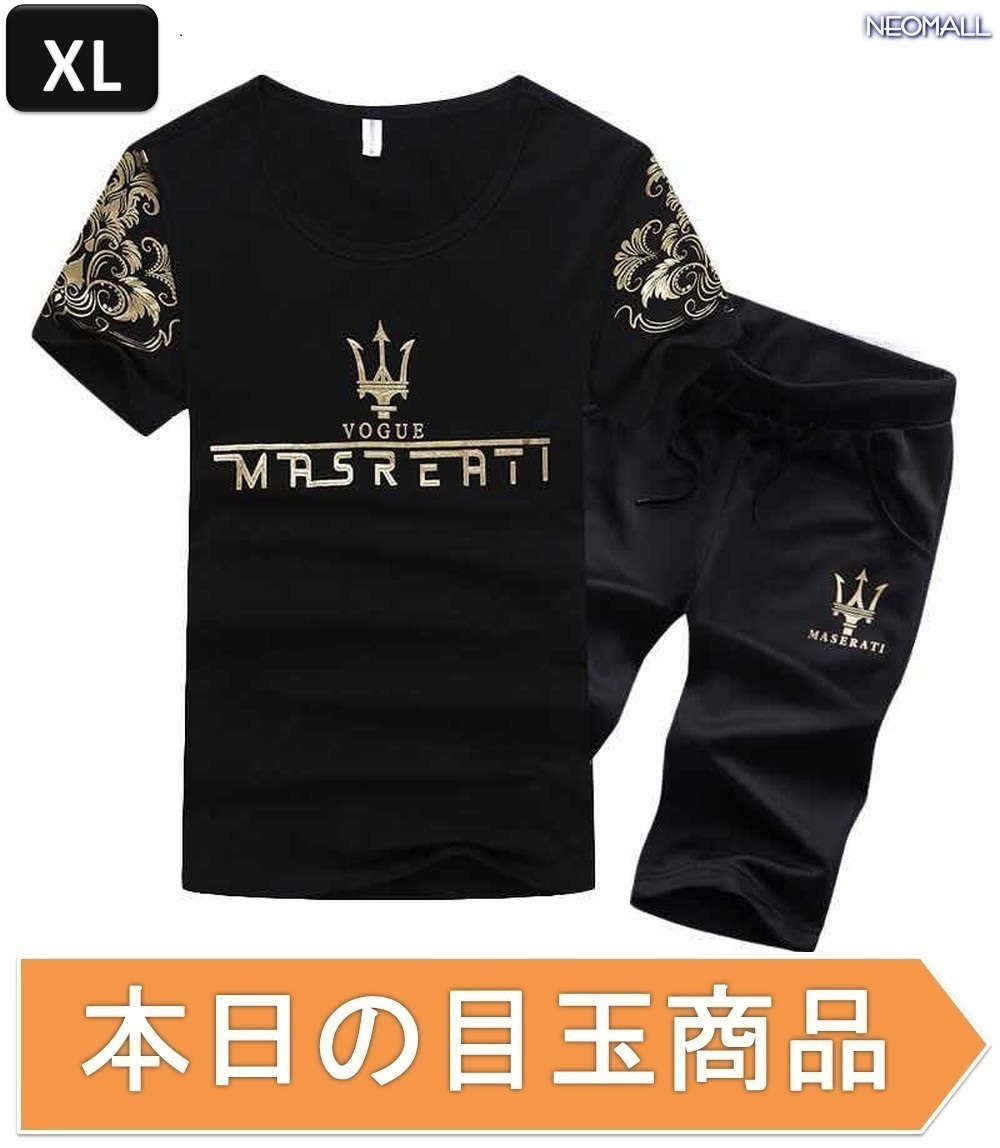 ☆今日の目玉商品☆ジャージ 上下 セット 半袖 部屋着 ルームウェア スポーツウェア セットアップ ブラック×ネイビー XLサイズ 【355】