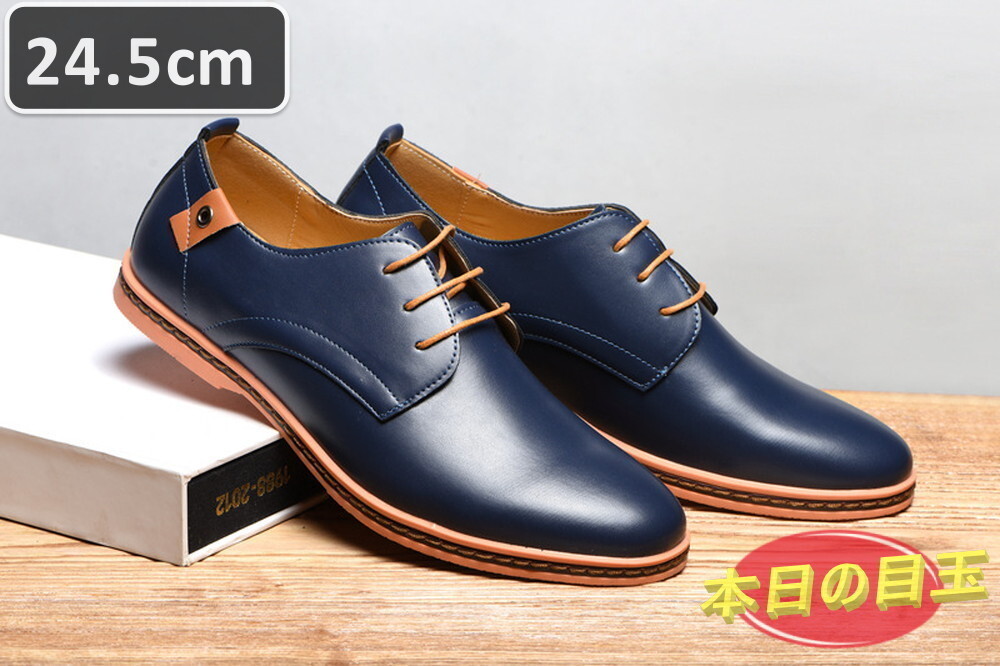 1円~ ☆ メンズ ビジネス レザー シューズ ネイビー サイズ 24.5cm 革靴 靴 カジュアル 屈曲性 通勤 軽量 仕事 【610】