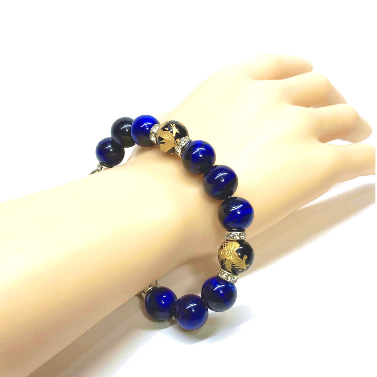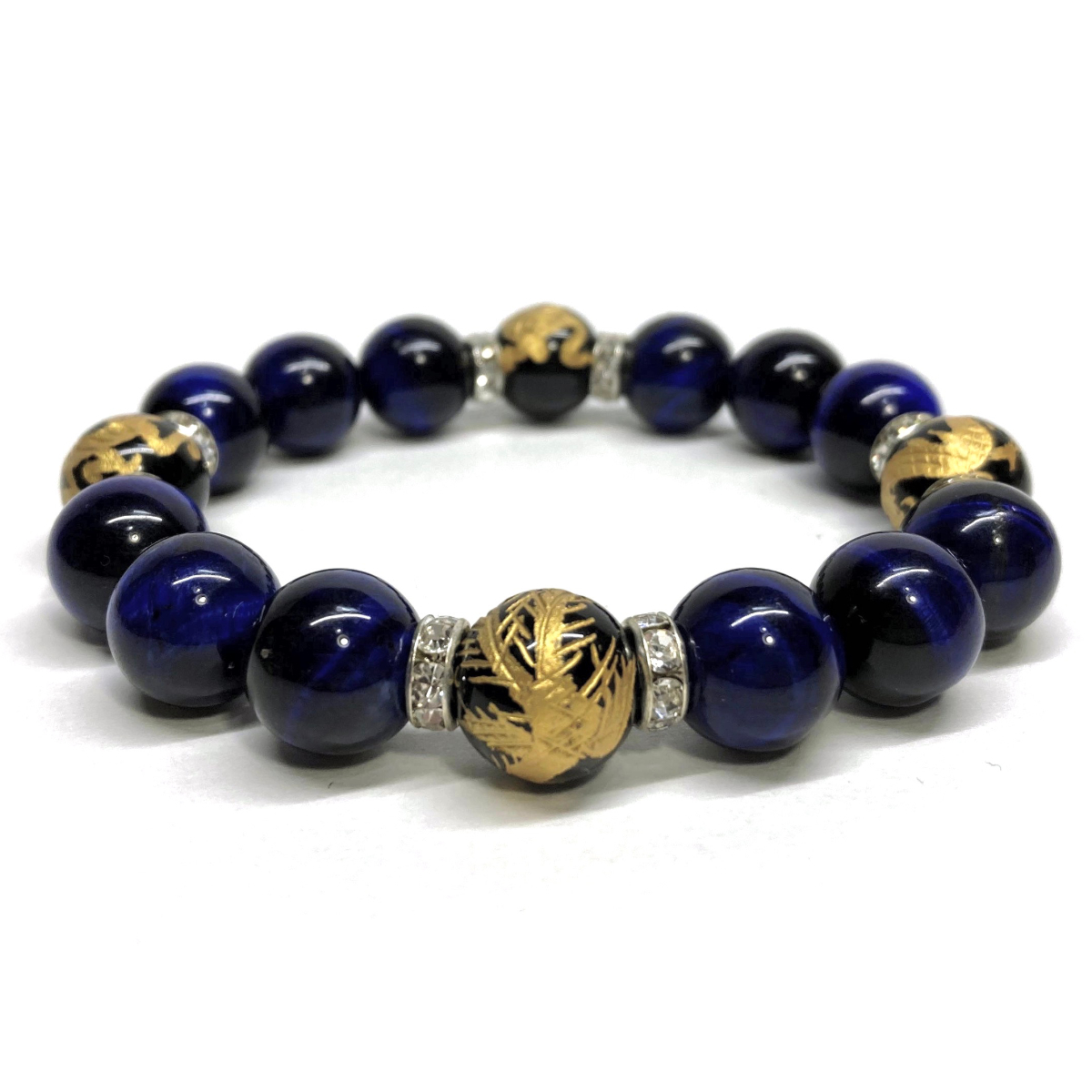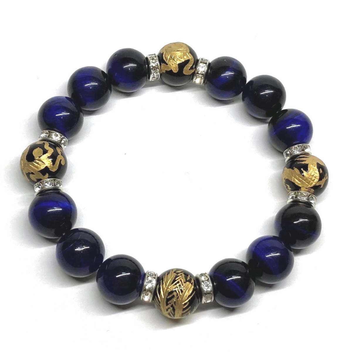 こちらは、四神獣金彫オニキとブルータイガーアイを組み合わせたパワーストーンブレスレットです。四神獣は、中国の伝説で4つの方向(東西南北)を守護する神聖な神。四神獣、厄災から身を守り、多くの運気を呼び込むと言われております。石大きさは程よくインパクトのある12mm玉で内周 約17cmです。 数に限りがございますので気になる方はお早めにどうぞ。