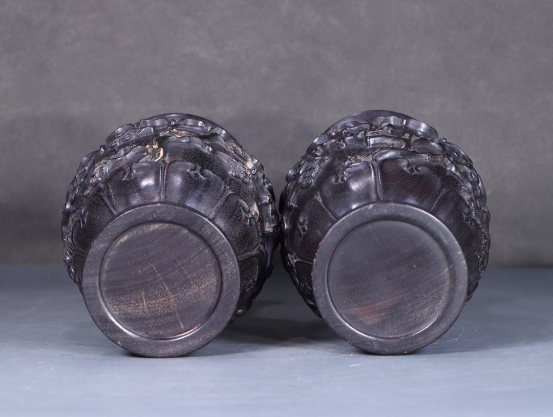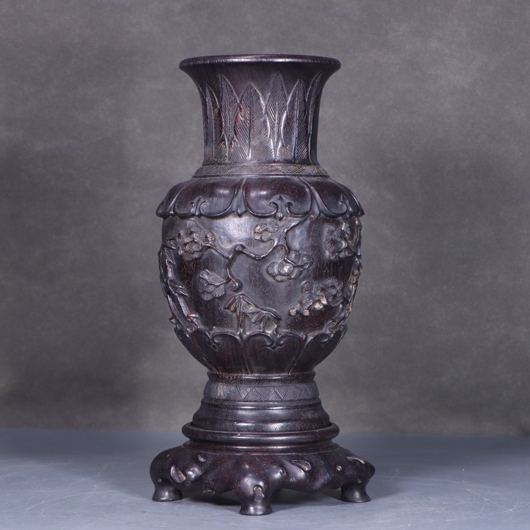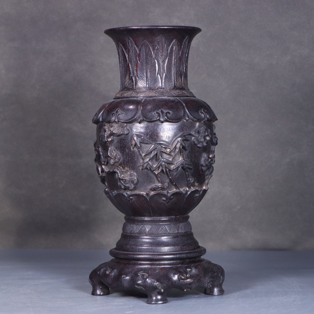 【安】清時代 珍木紫檀 歳寒三友紋賞瓶一対 極細工 古置物 古擺件 中国古美術 時代物 古董品 241 サイズ(約寸) |