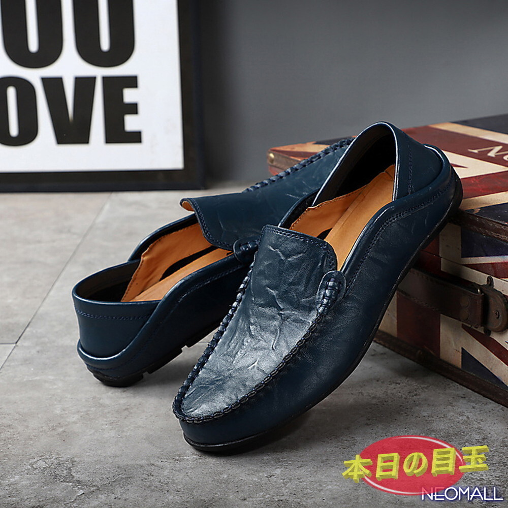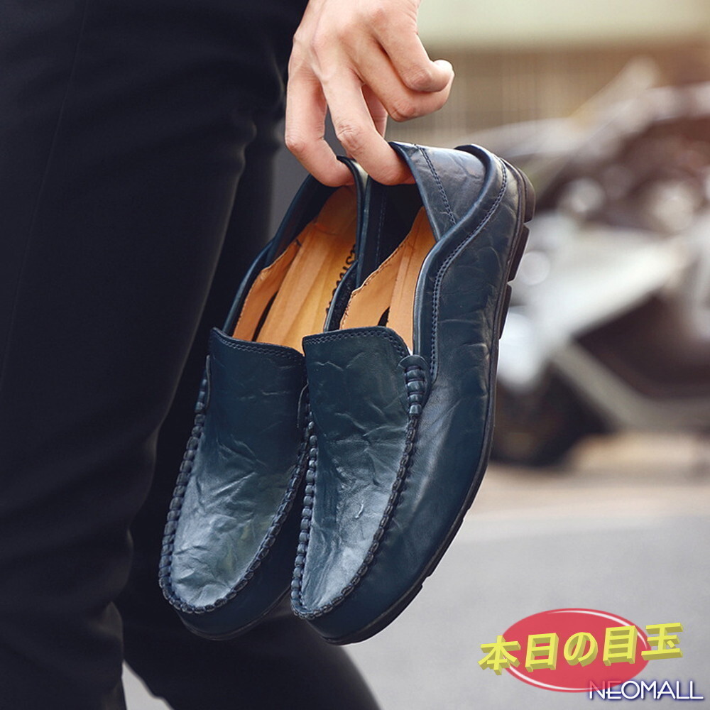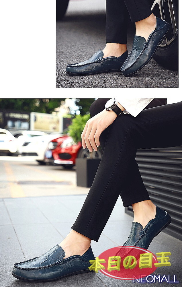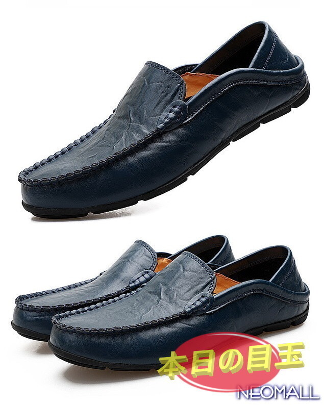 1円~ ☆ メンズ ビジネス 牛皮 シューズ ネイビー サイズ 24.5cm 革靴 靴 カジュアル 屈曲性 通勤 軽量 【624】