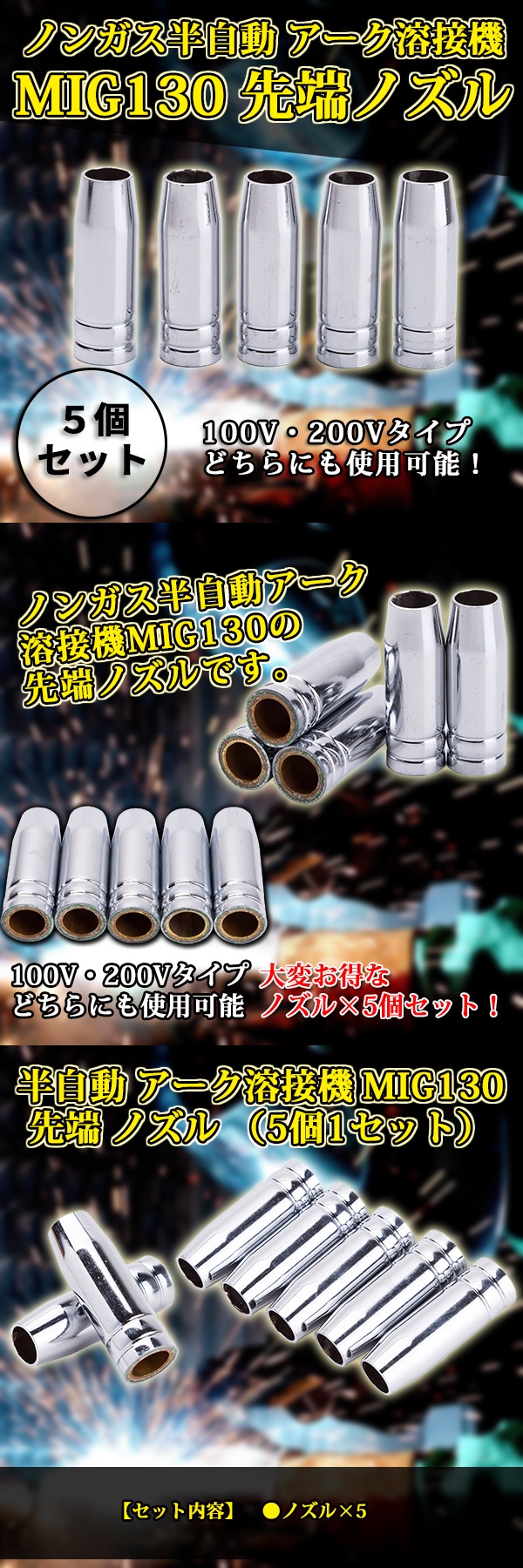 半自動アーク溶接機 MIG130 先端 ノズル(5個1セット)