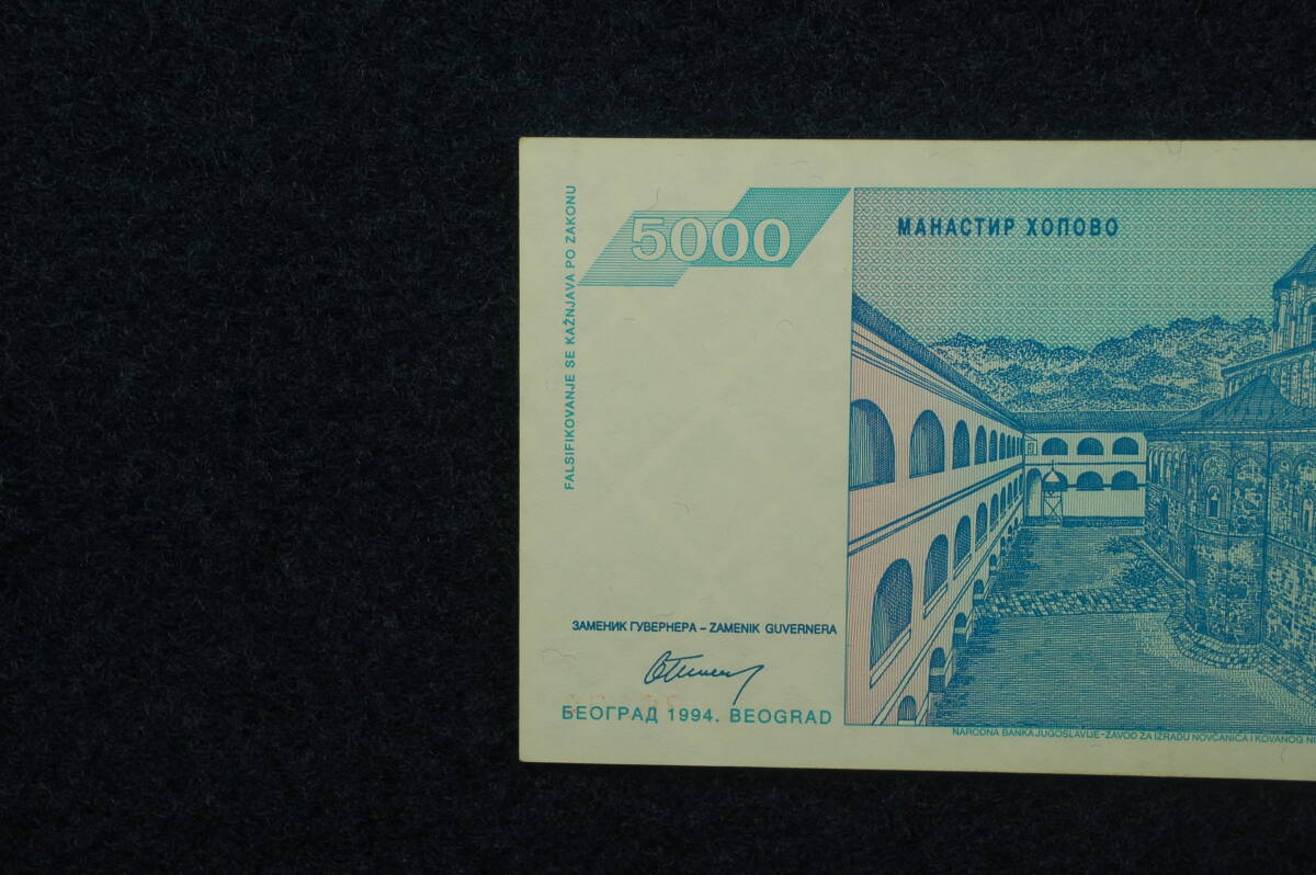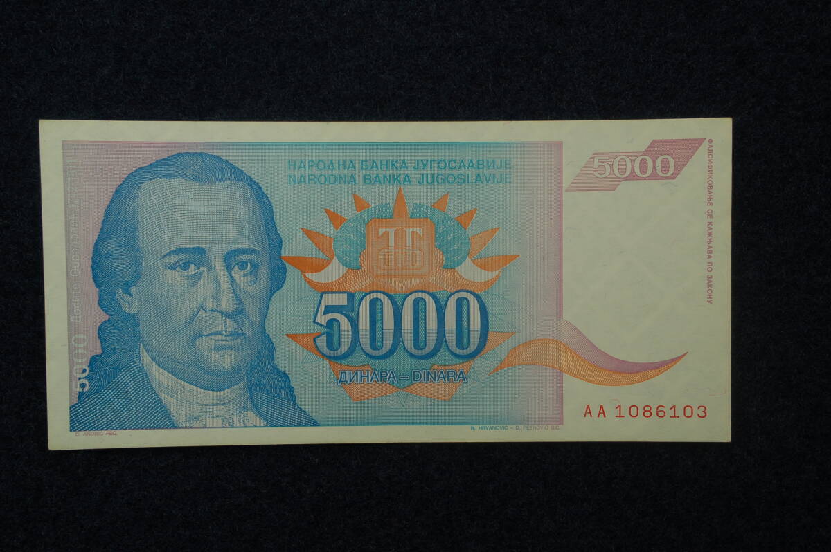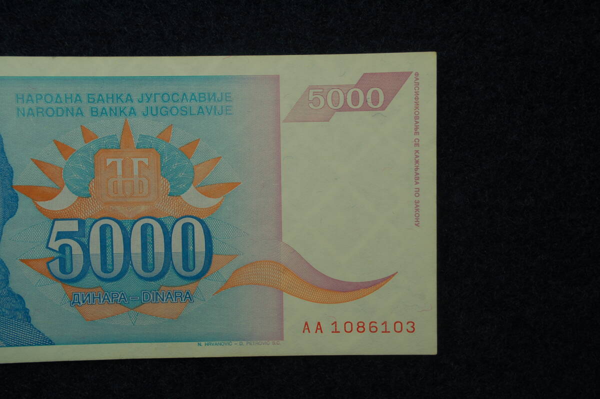 ユーゴスラビア インフレ紙幣 5,000ディナール 5千 極美品 レア