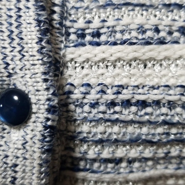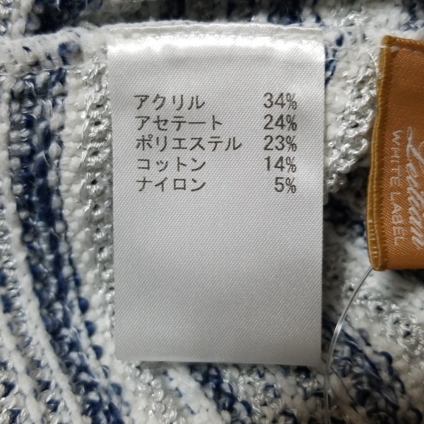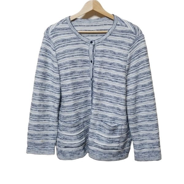 レリアン Leilian カーディガン サイズ13+ S - 白×ネイビー×シルバー レディース 長袖/WHITE LABEL/ボーダー 美品 トップス