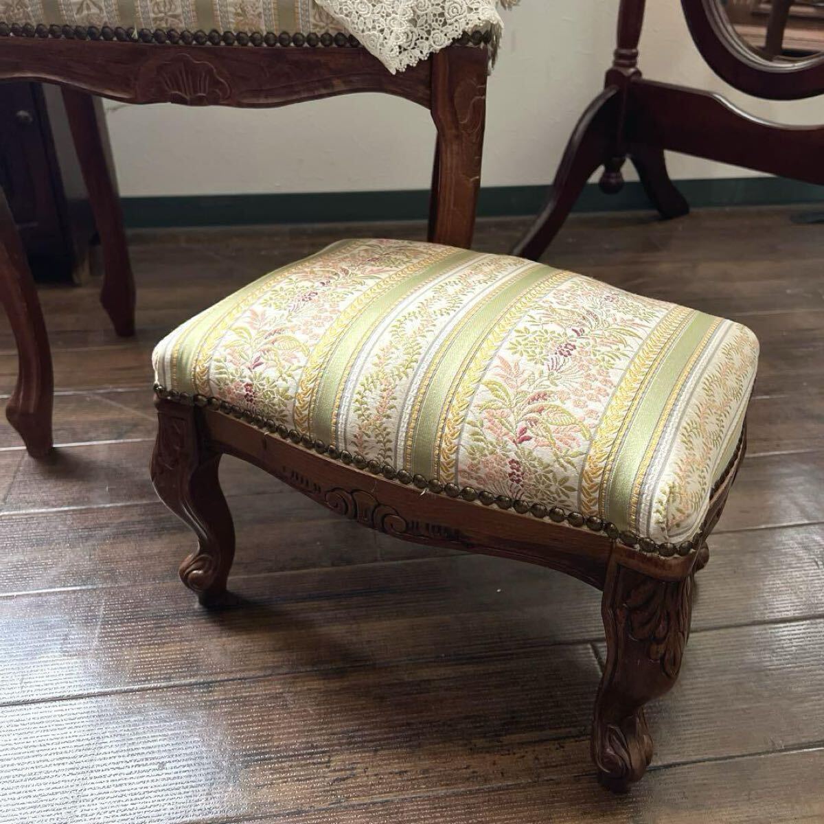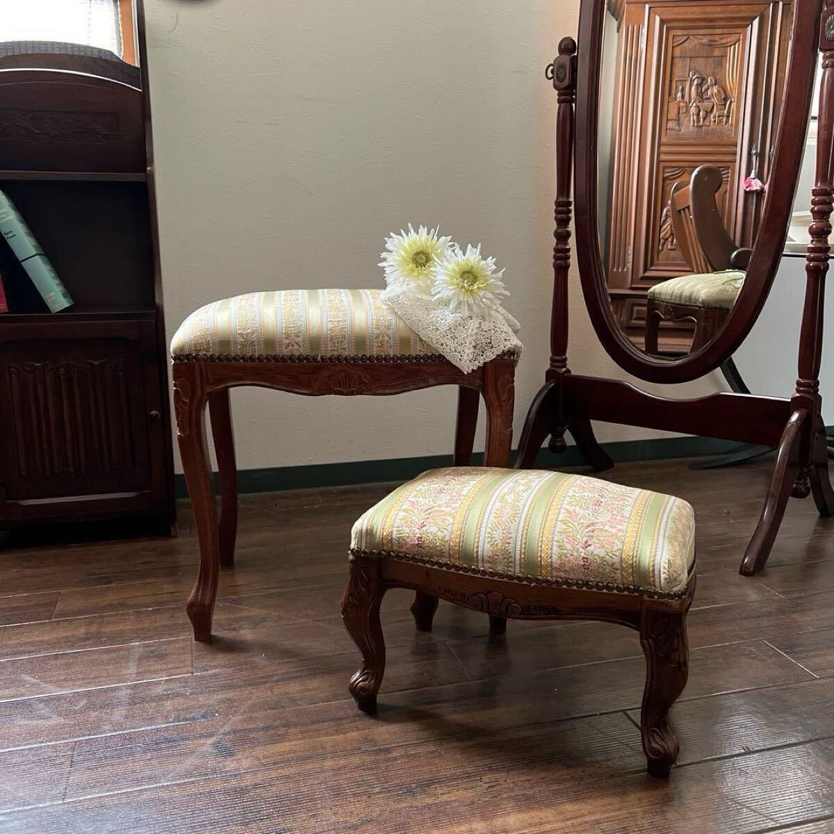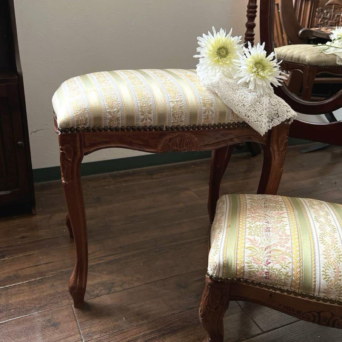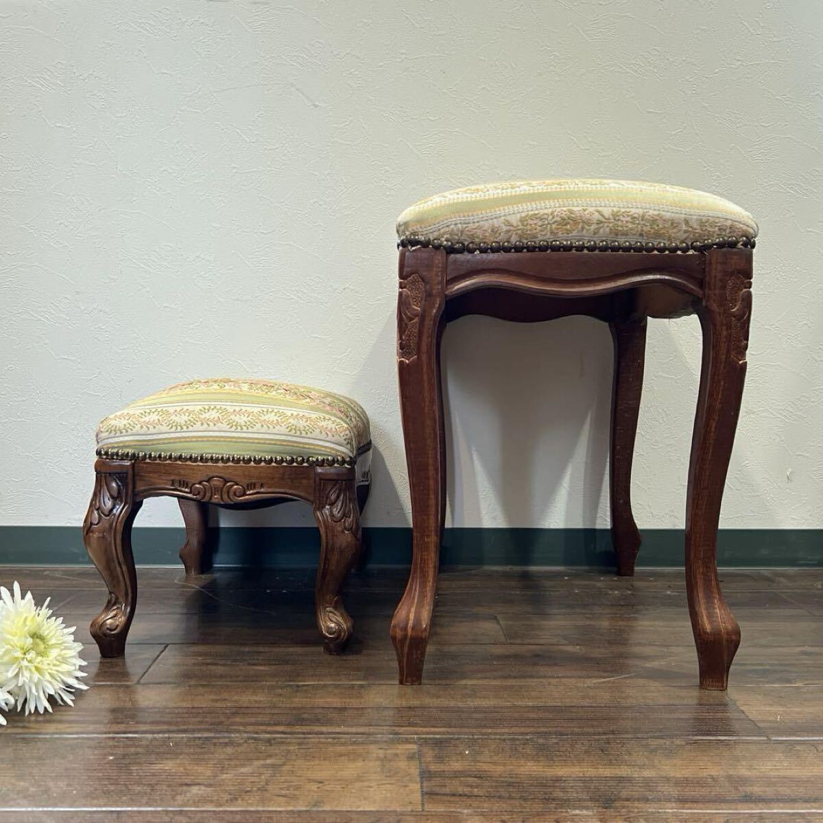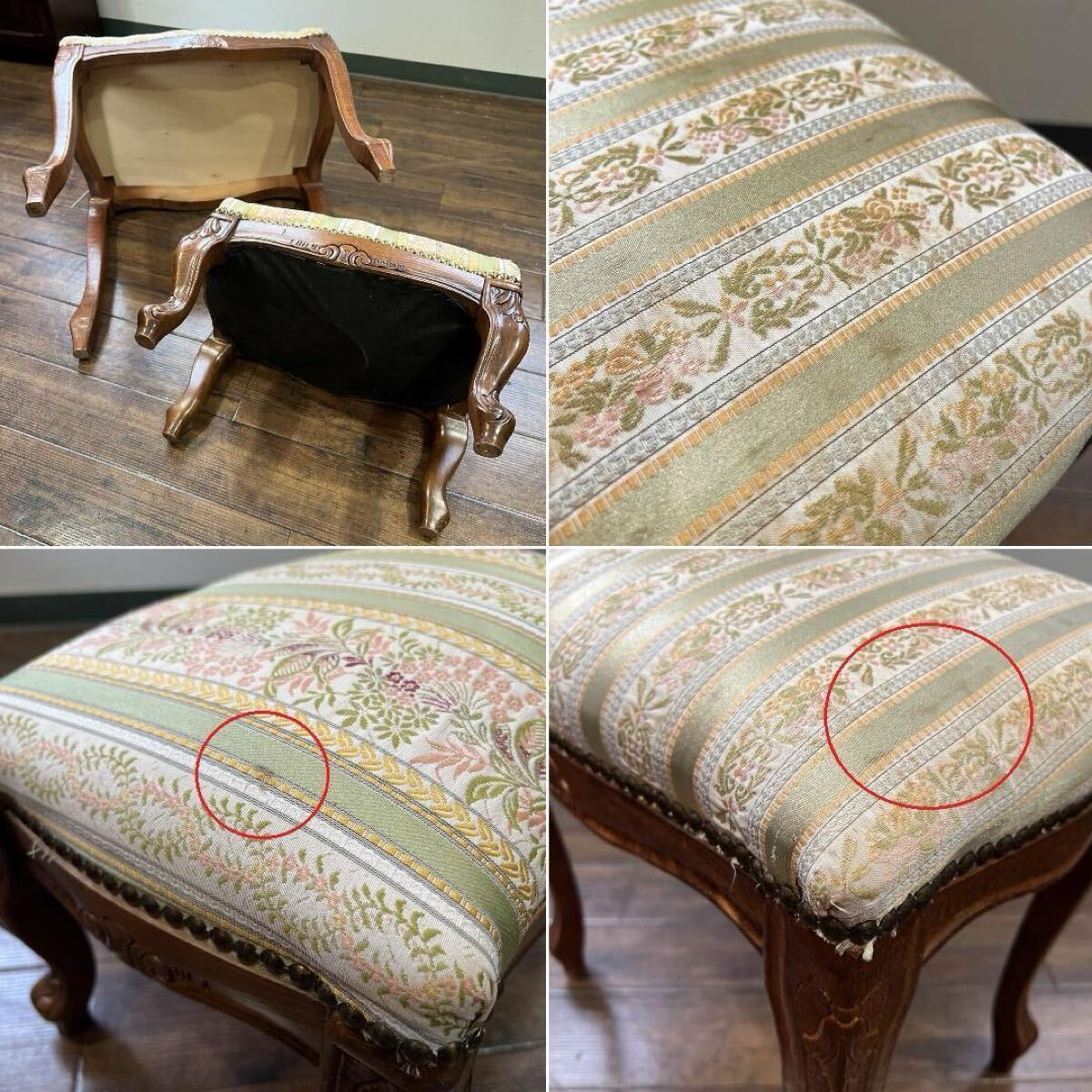 【 スツール・オットマン 】 ちょっと腰掛けたいときや、ソファでのくつろぎ時間にも。 お玄関で靴を履くときに少し腰掛けたり、ちょこっとカバンを置きたい時にも便利なスツール。ソファの側に置いてあるだけでも可愛らしく、寛ぎ時間にはフットスツール(オットマン)としてお使いいただければ、よりラックスした時間をお過ごし頂けます。 サブ的な役割のアイテムですが、足りずをまかない暮らしをより快適にする素敵な逸品です。 ■サイズ(約) スツール/ 幅 48.0㎝ 奥行 33.0㎝ 高さ 48.0㎝ オットマン/ 幅 39.0㎝ 奥行 27.5㎝ 高さ 27.0㎝ ■状 態 経年による若干の小キズや汚れがあります。 オットマンの座面に偏りがあり、裏張りをスプリングが押している感じがあります。 スツールの布地にシミが見られます。(画像参照) 詳細は写真でご確認ください。 ※神経質な方・完璧をお求めの方はご購入をお控えください。 詳細は写真を参考の上、ご入札をお願い致します。 商品写真に関しまして、PC環境や撮影状況等により 色合いが実物と若干異なる場合がございます。 また、サイズに関しましても若干の誤差が生じる場合がございます。 ご理解、ご了承の上、ご入札をお願い致します。 下記の注意事項をよくご確認の上、ご入札をお願い致します。 金額の入力ミスによる入札金額の変更や入札取消はできませんのでご了承下さいませ。 |