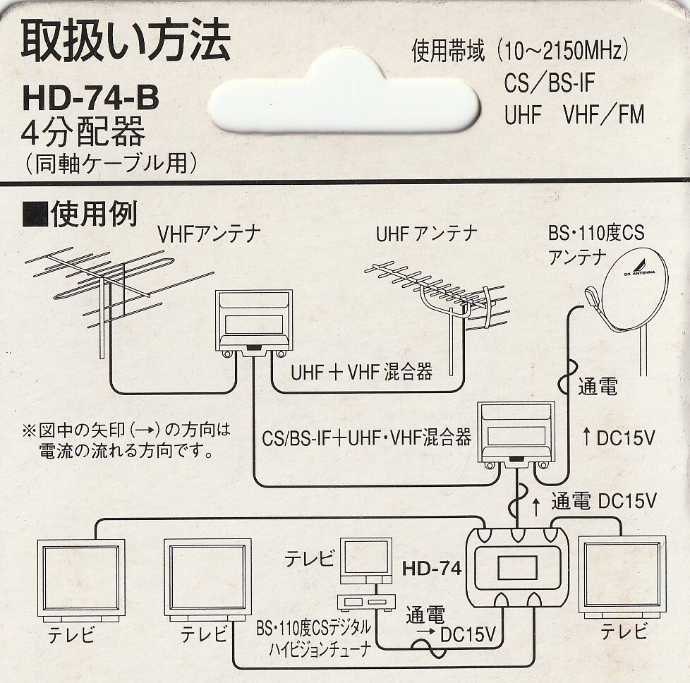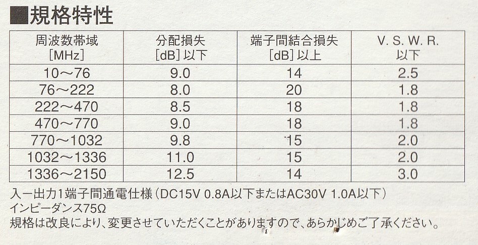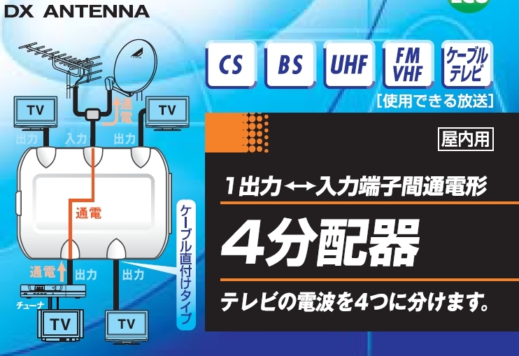 ●テレビアンテナ信号を4分配します。※分配数に応じて電波が弱くなりますのでご注意下さい。