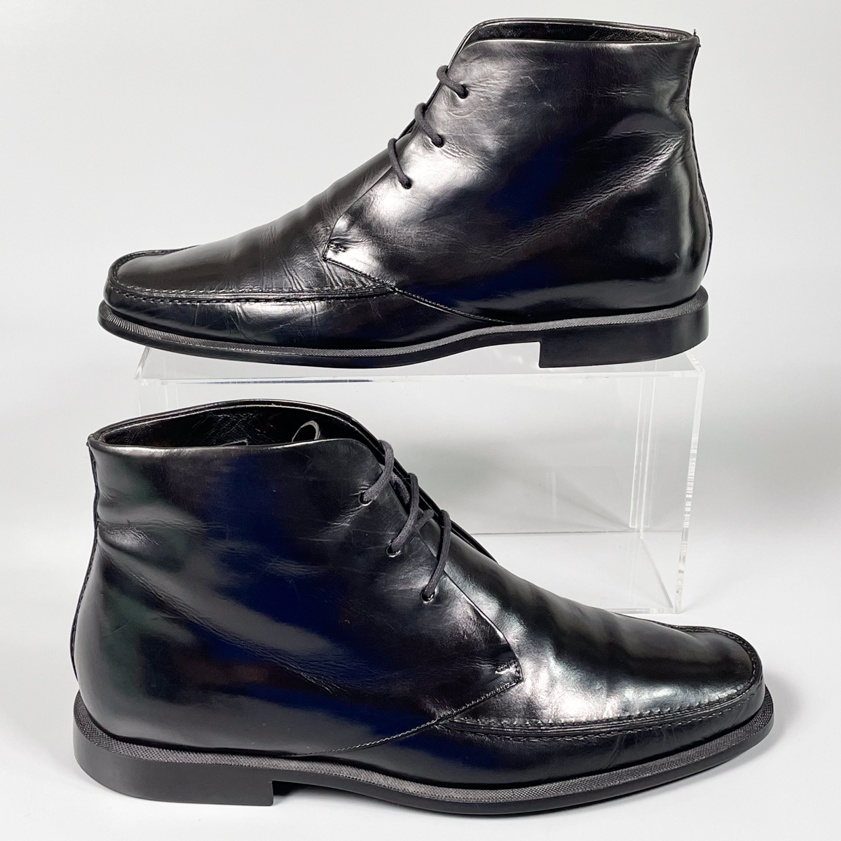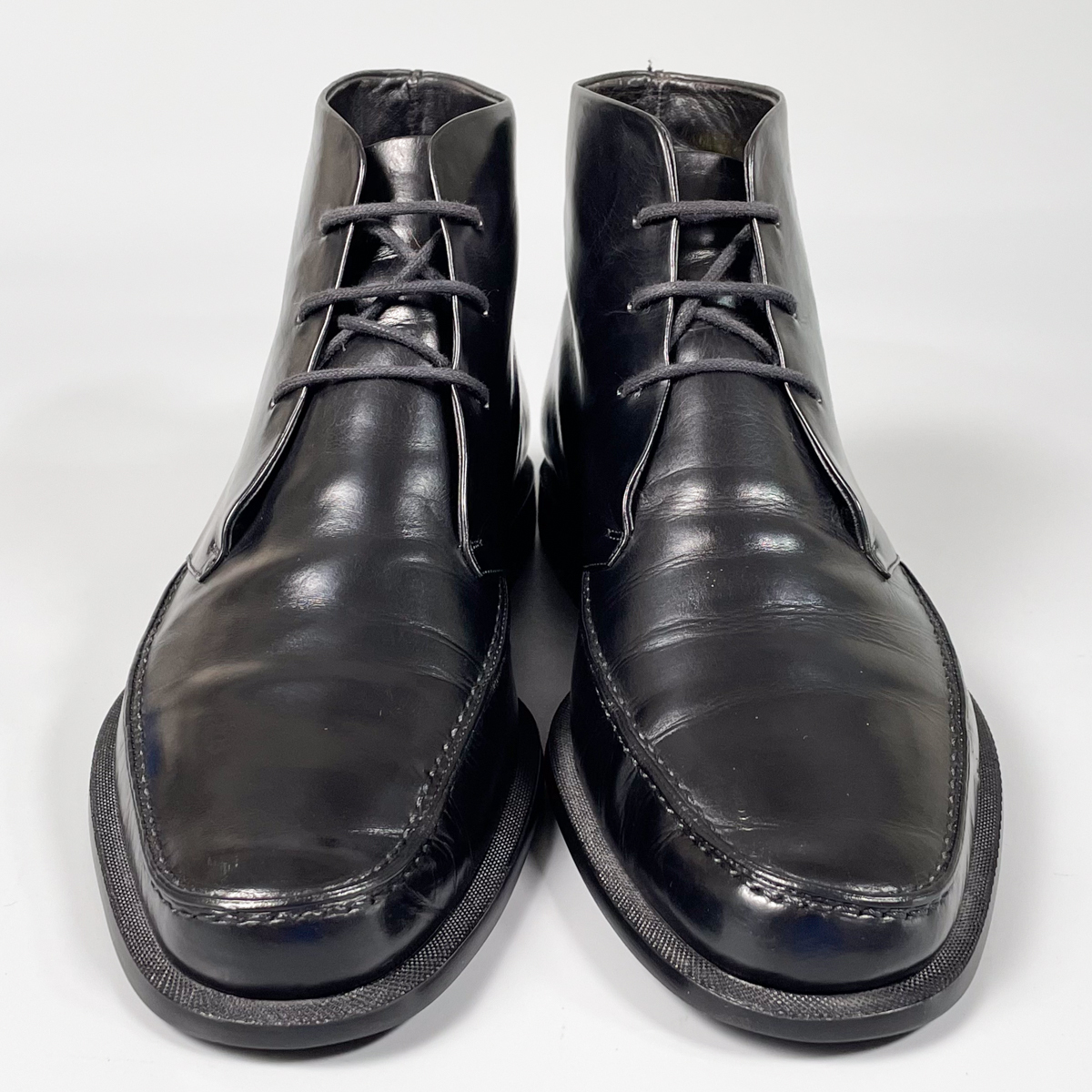 即決 GUCCI グッチ チャッカブーツ ショートブーツ ブラック 黒 メンズ イタリア製 本革 レザー 革靴 24.5cm ビジネスシューズ E2340