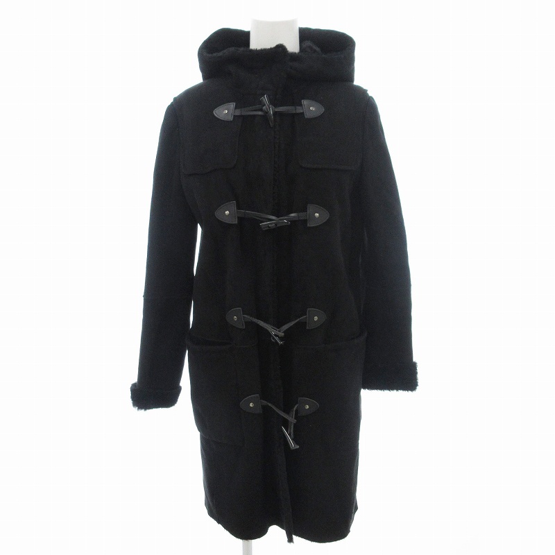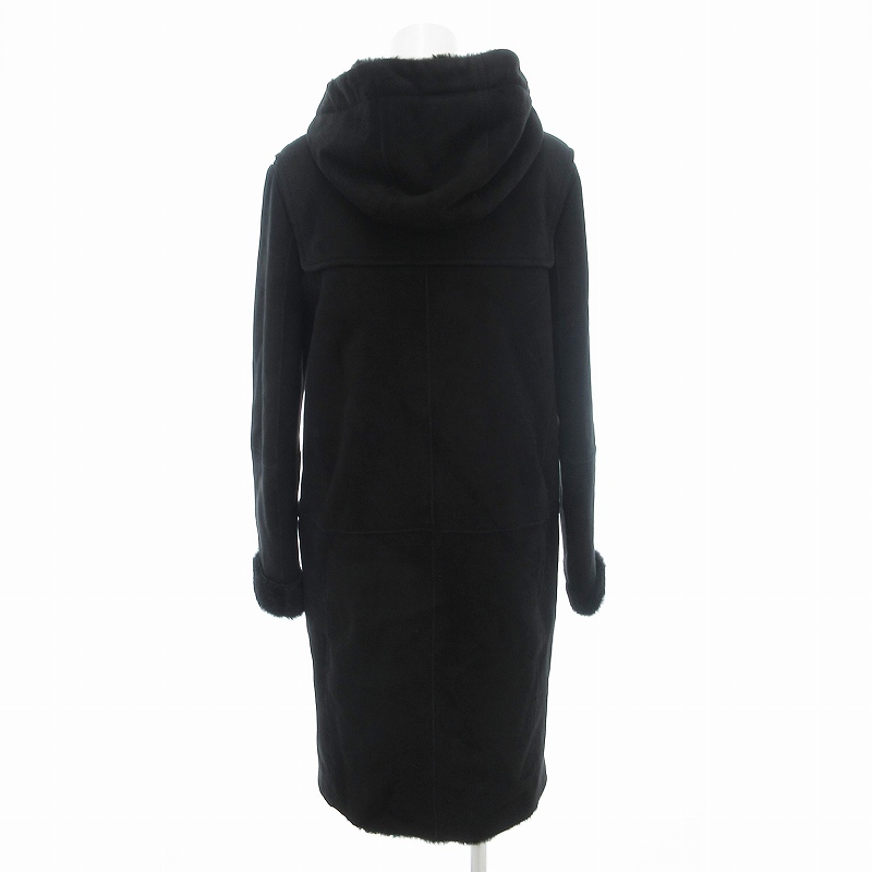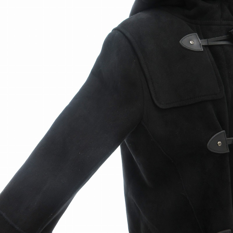 セオリー Theory ダッフルコート シープスキン ムートン レザー 羊革 フード P 黒 ブラック /UD レディース