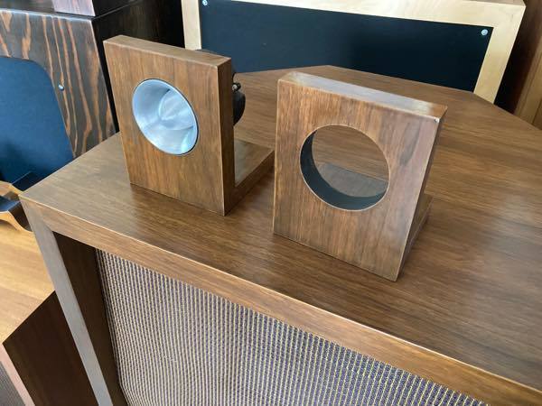 ご覧いただきましてありがとうございます。 当工房オリジナルのJBLツイーター(075 2402 077 2405)等の設置用スタンドです。 馬蹄形フランジ、四角型フランジの両方に対応しています。 取り付けは付属の木ネジで固定します。 素材には良質なフィンランドバーチを使用し、ウォールナットの突板&つや消しクリアウレタンニスで仕上げましたので、十分な強度と高級感があります。 スタンドの底面にはベロアシートを貼っていますので、エンクロージャー等の上に直接設置しても傷をつけません。 ツイーター単独で設置位置を細かく調整できるようになりますので、セッティングの幅が広がり、音質の改善にも効果が期待できます。 また、C34やC40等の2WAY(130A+175DLH)から075等をプラスした3WAYへグレードアップする際、このスタンドを使用することでスタイリッシュにセット可能です。 【製品仕様】 寸法:高さ 約165mm×幅 約130mm×奥行き 約130mm 材質:フィンランドバーチ合板 突板:ウォールナット 塗装:ウレタンニス(つや消しクリア) 付属品:木ネジM3×8本(馬蹄形フランジの場合はM3.5×6本) 発送はゆうパックの予定です。 フランジ形状により付属のネジが変わりますので落札後にご使用予定のツイーター機種名及びフランジ形状(馬蹄形または四角型)をお知らせください。 |