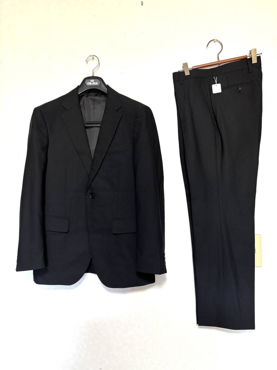 ■ 特徴:メンズ用,春夏秋用の二つボタン パンツスーツ。色はブラック系。シャドーストライプ入り