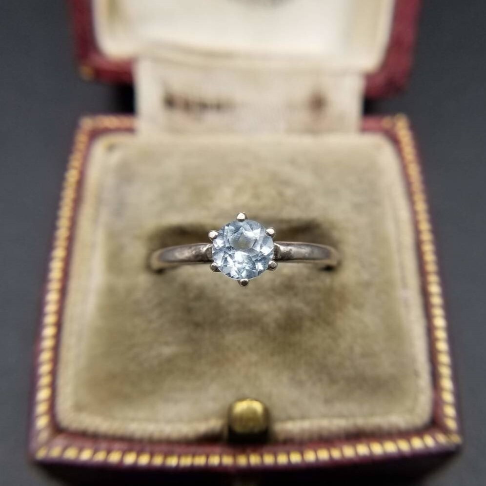 トパーズブルー ソリテール 925 シルバー ヴィンテージ リング 銀 指輪 上品 クラシック エレガント 小ぶり カジュアルにも Y6-N
