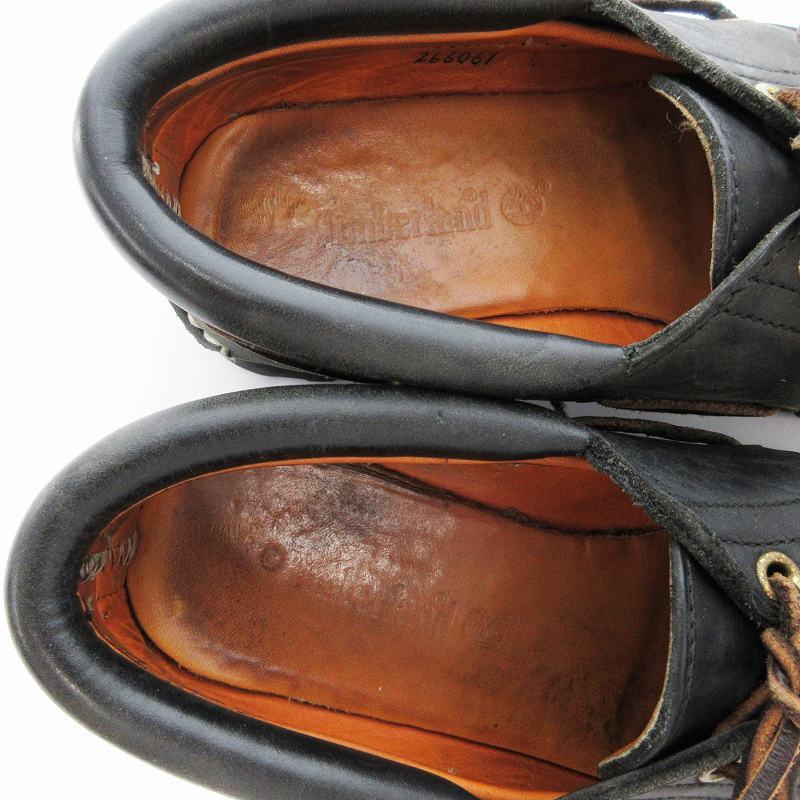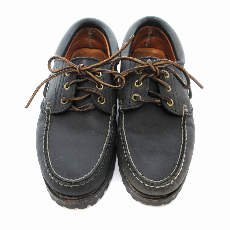ティンバーランド Timberland 90s ヴィンテージ スリーアイ 3-EYE デッキシューズ ローファー レザー 75M 黒 ブラック /JS メンズ