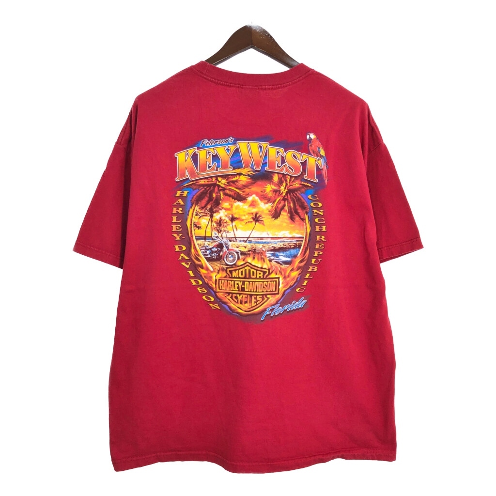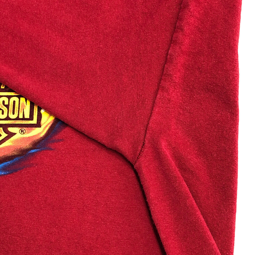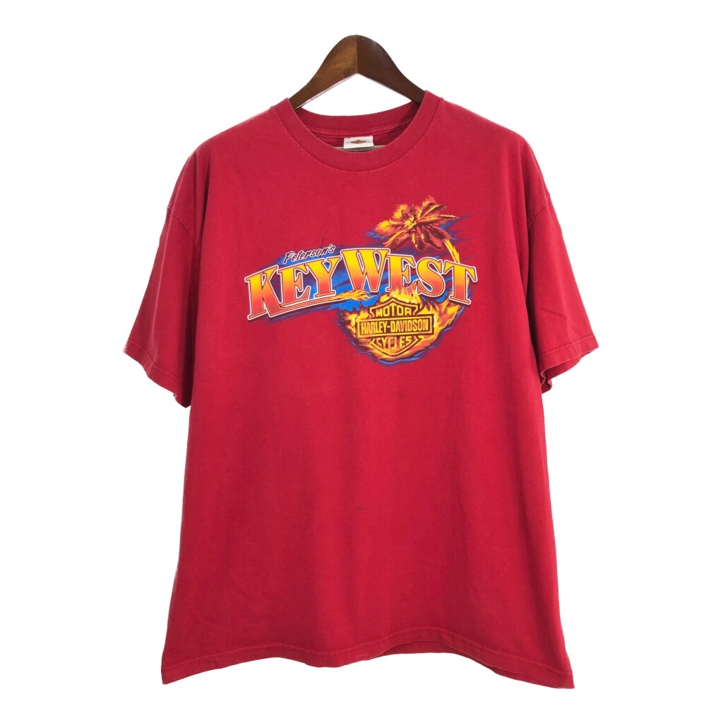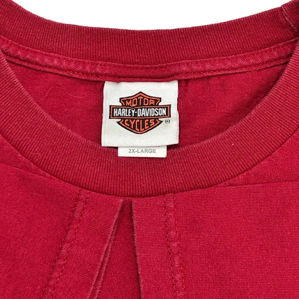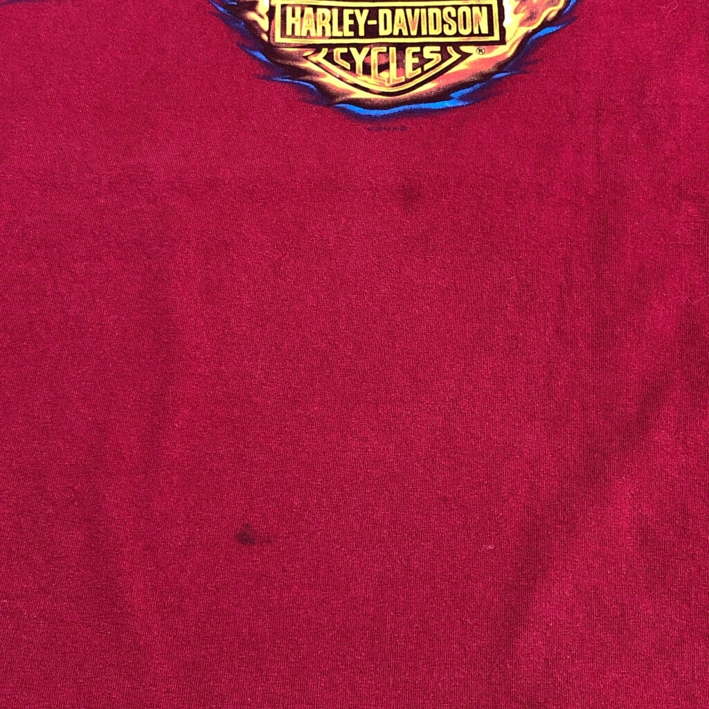 [商品管理番号] U1902 [ブランド] HARLEY DAVIDSON/ハーレーダビッドソン [サイズ] 2XL [実寸サイズ] 肩幅:約63cm 着丈:約78cm 身幅:約64cm 袖丈:約22cm [主な素材] 表地 : コットン [色] レッド [仕様] 大きいサイズ、モーターサイクル [状態] 汚れ:胸、腹部 特記事項:色褪せ、プリント劣化 | |||