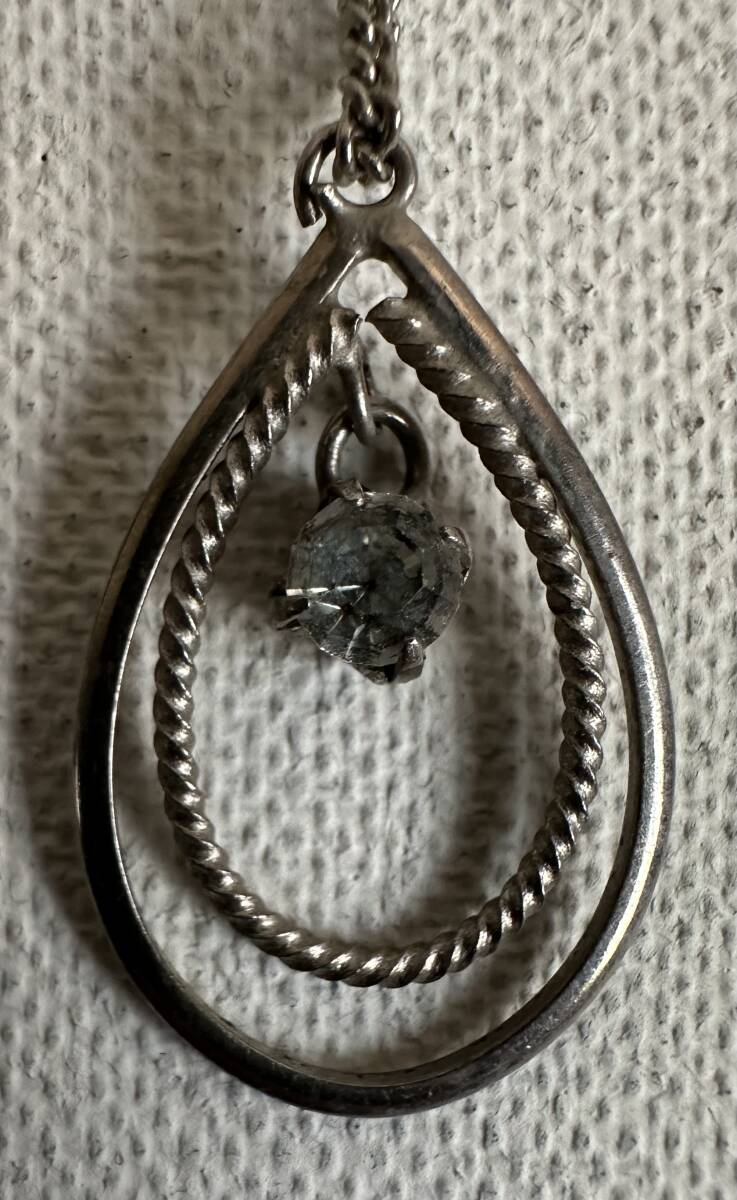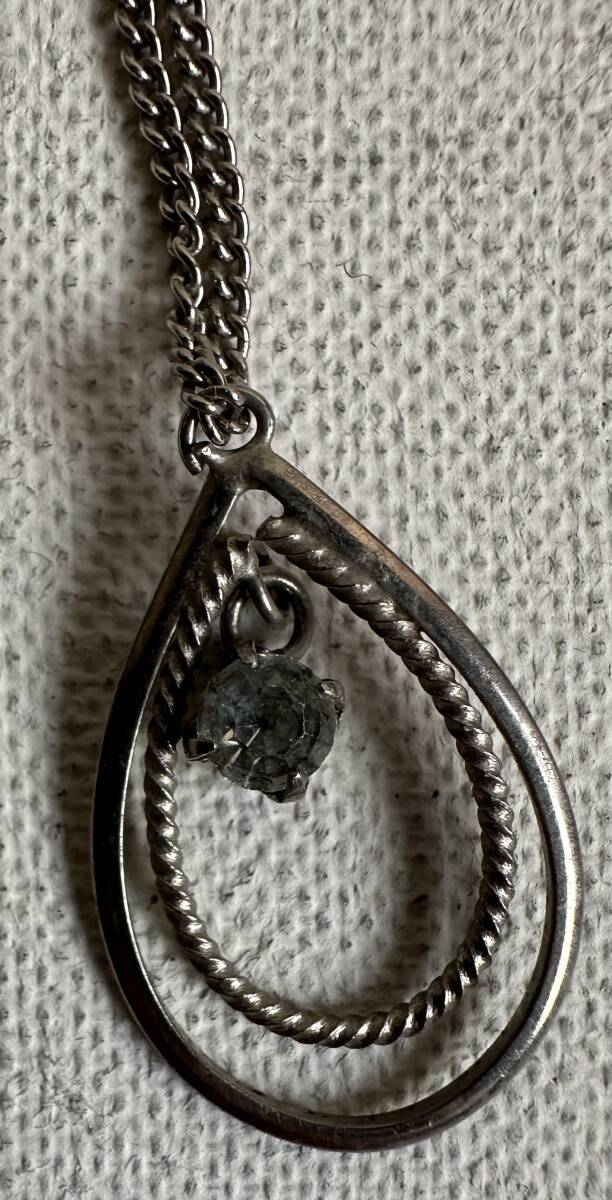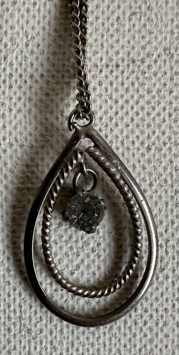 しずくフォルムのネックレス美品です。しずくのサイズ:全長2.5cm。全幅1.8cm。留め具込みのチェーンのサイズ:全長22.7cm。全体的には美品の部類です。ご理解頂ける方のみノークレーム・ノーリターンでお願いします。