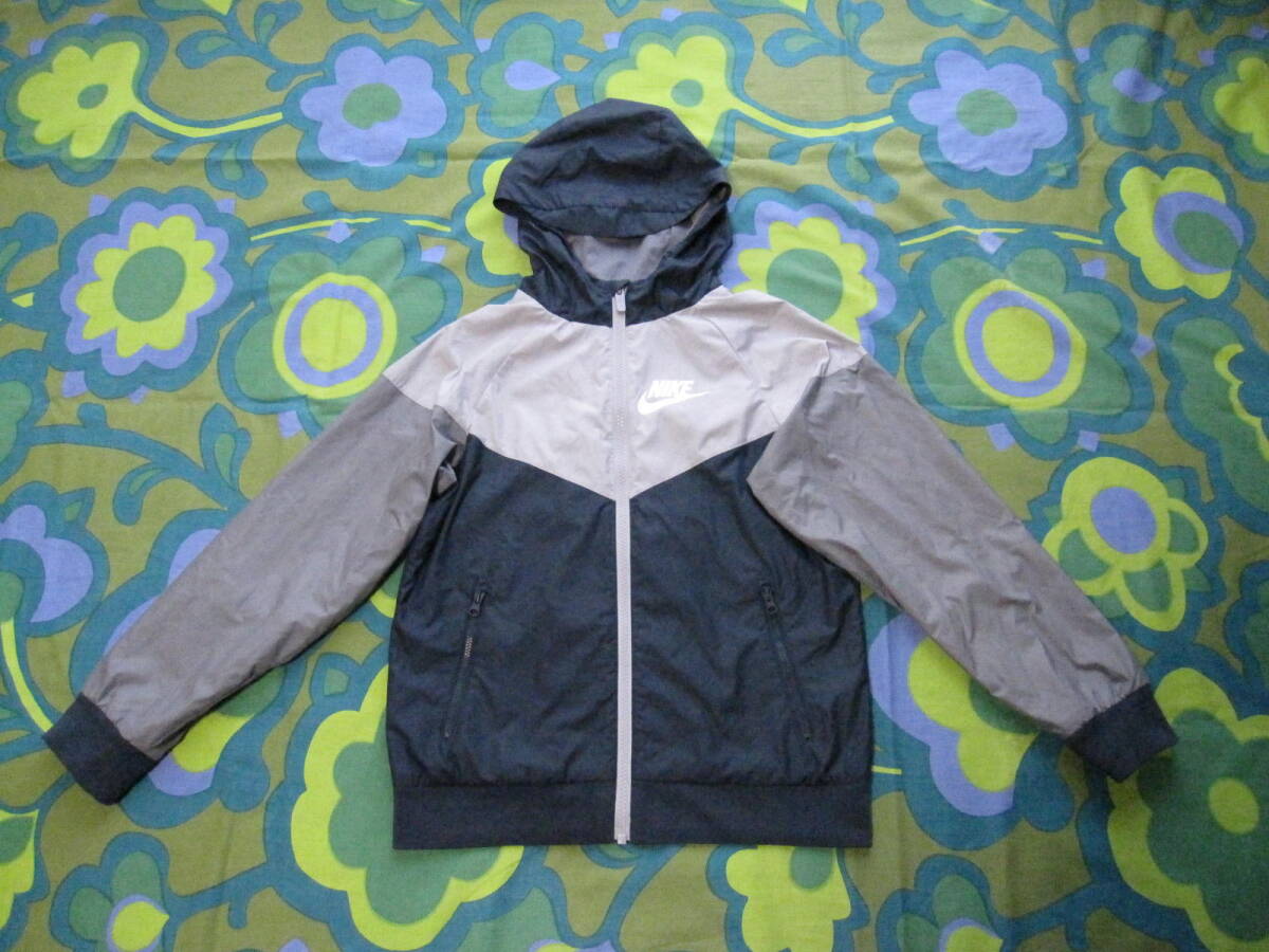 キッズS 130-140 NIKE ナイキ フルジップ パーカー ポリ100 グレー×ネイビー 使用少ないキレイ