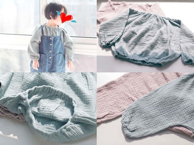 ミント♪ キッズ服/子ども服【綿ガーゼ】ふわふわボリューム袖Tシャツ 120cm