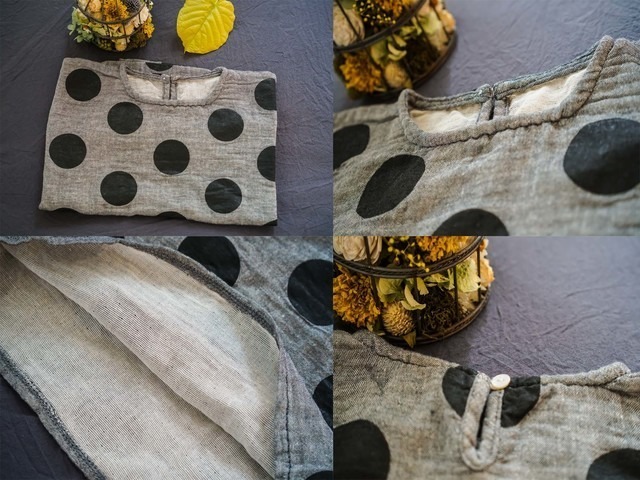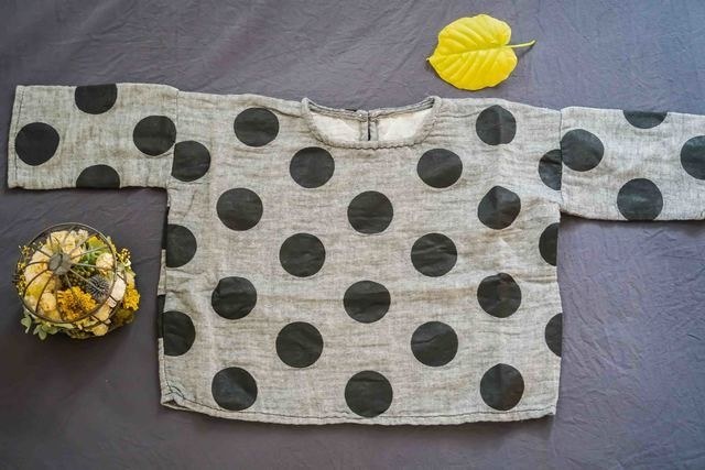 丸々/ドット柄 錫色/グレー♪ キッズ服/子ども服【綿麻二重ガーゼ】長袖Tシャツ男女兼用120cm・水玉