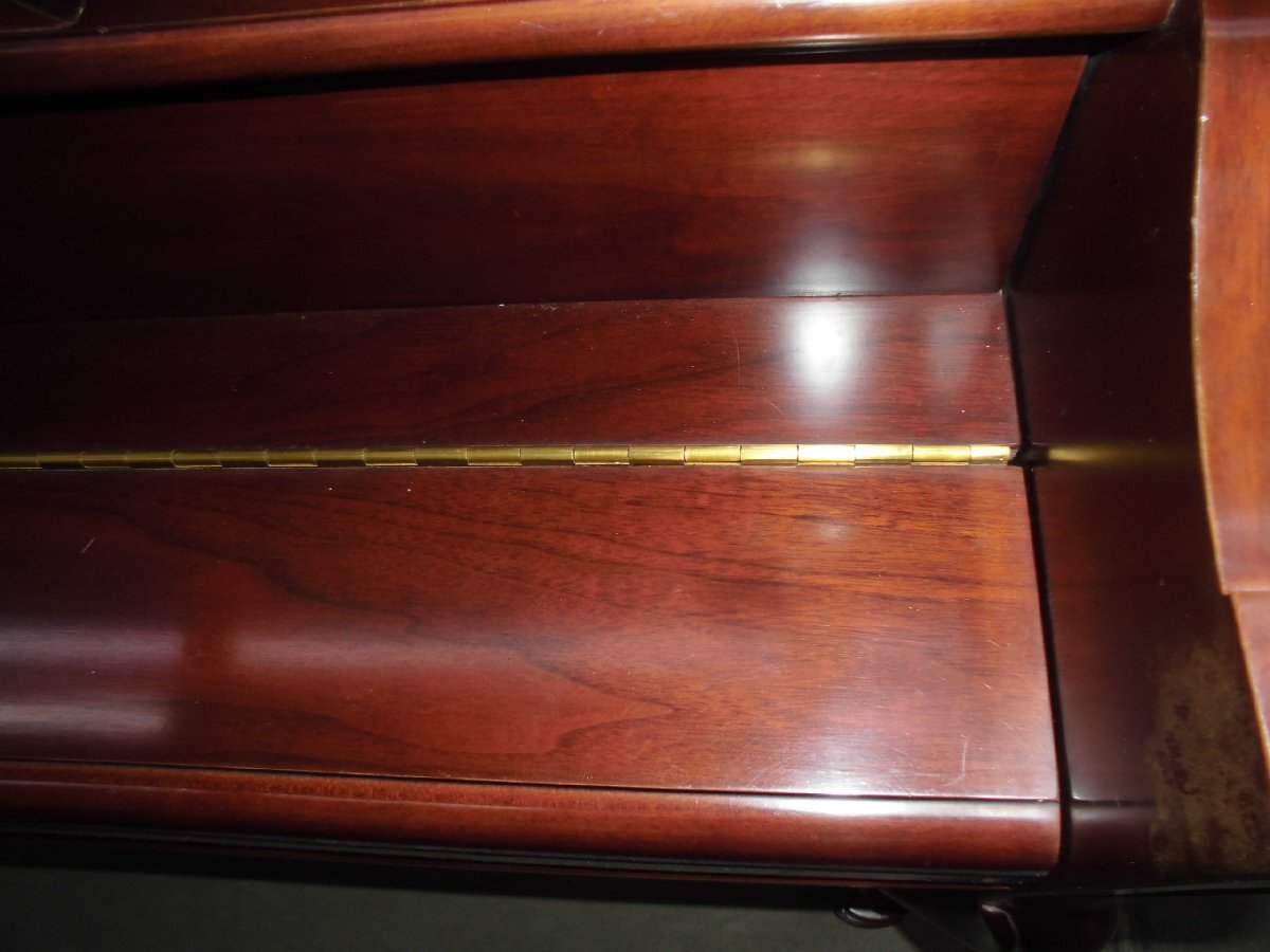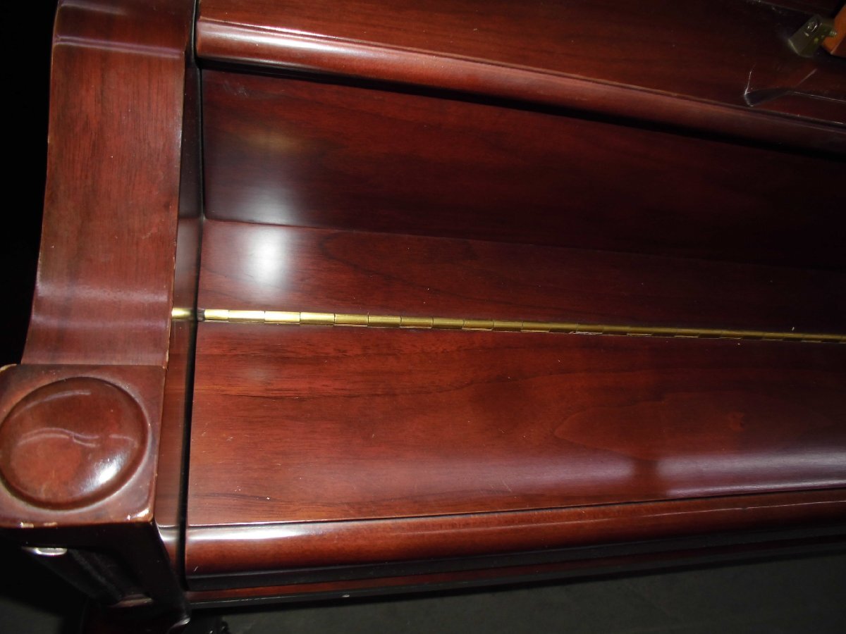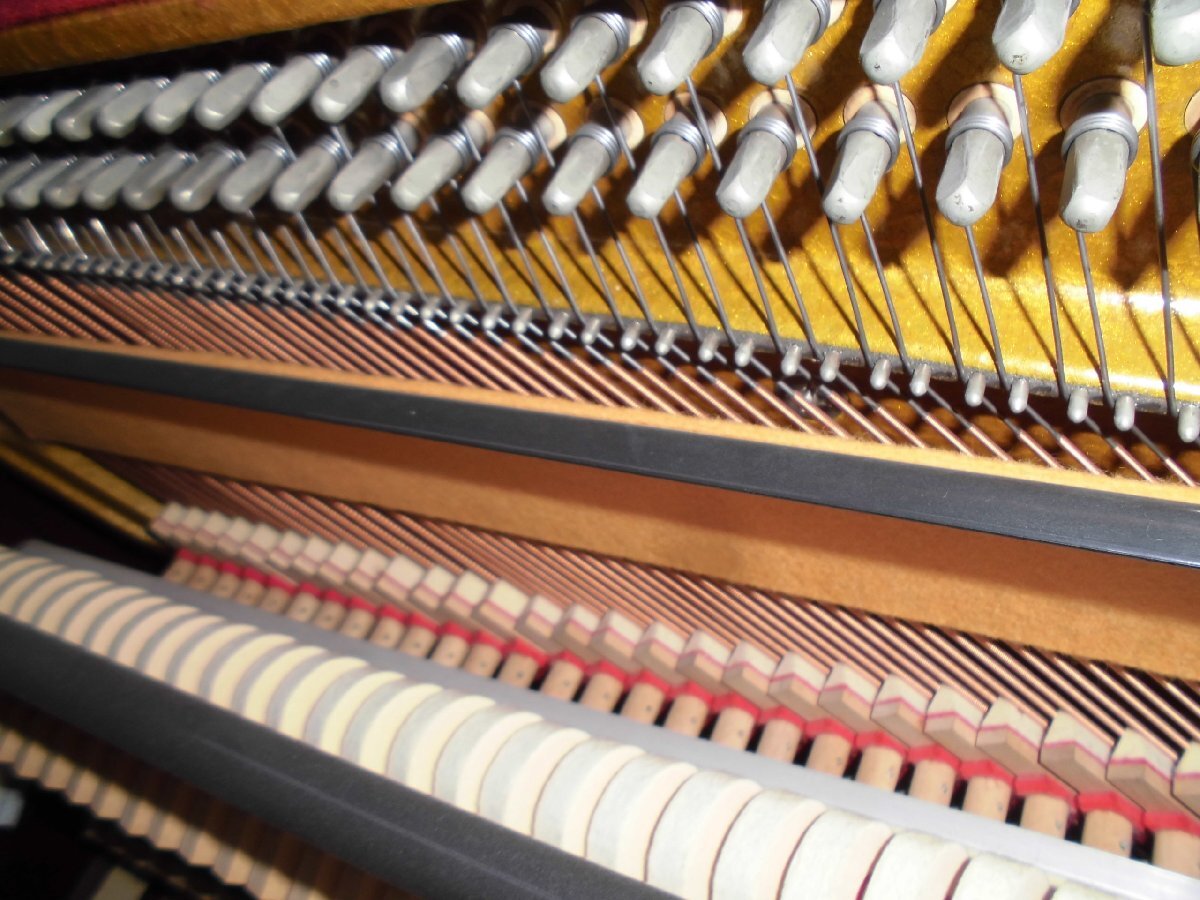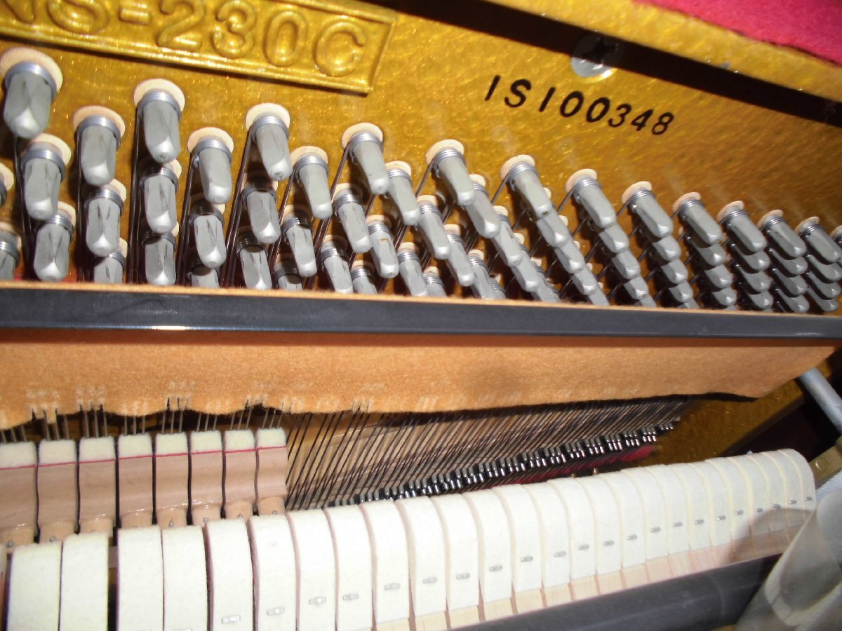 美しい、良いピアノを格安・お買い得価格にてご提供いたします!更に値下げしました! 東洋ピアノが輸入して監修した外国製のピアノです。生産国は韓国の様です。小型の、チッペリング脚、マホガニー系の木目を生かしたきれいなピアノです。お部屋に設置されて、カラーとデザインが家具調に違和感なく溶け込みます。色合いは写真2、6,7,8の色合いが良く出て参考になります。使用頻度は少なく、機械部分のアクションのハンマーの摩耗は殆どありません。これからも充分の間20年以上はお弾き頂けます。もし、長持ちに心配がおありの方は、1年に一度とは申しませんが、2~3年間隔にでも調律をされる事をお勧めします。音律の保持と共に長持ちの秘訣です。外装にもほとんど傷は有りません。本当に綺麗な中古です。只、大事に保管されていましたが、中古で良く見れば小さな内傷や擦り傷は有るかも知れません。外装の磨き出し、調律、整調を済ませてお届けします。このピアノに夜間や近隣、階上階下の方に気兼ねなく何時でもレッスン出来るサイレンサーを取り付け出来ます。本体価格145,000円、取り付け費45,000円ですがお求め時に取り付けられる場合には、取り付け費を無料にて承ります。に気兼ねなく下見、試弾を歓迎します。Webショップではご覧頂けなくても、安心してお求め頂ける様に努めております。又、遠隔地・北は北海道から鹿児島まで運んだ実績が多数あります。又、お届け後には必ず調律を実施しております。が、試弾、下見をご希望される方を歓迎します。お見え頂く前に一報頂けますと確実です。お気に入って頂けましたら当オークションにて落札下さい。付属品を無料にてお付けします。高低出来る新高低椅子、トップカバー、洋間には丸台、和室には敷板、キーカバー、艶出し材、磨き布をお付けします。又、別途にオプションにて、防振・防音用の丸台も中古4,000円で、他にも防振。防音用品を格安にてお取り寄せします。故障保証を5年間致します。ピアノは丈夫で殆ど故障は有りませんが、稀に雨が続いた折に、音が出難い、鍵盤が動き難い等の不具合が起こる事が有ります。もし、起きた場合には応急処置の仕方をmail等でご説明し、その後、御地を訪れた際に修復します。お届けします。1階・階段5段位、段差50cm位、マンションでエレベータに載る等の比較的に平易な条件の方には自社便にて無料お届けします。お部屋に設置後、調律を無料にて致します。無料お引き取りをします。電子ピアノ、電子オルガン、エレクトーン、古~~いピアノ等をお引き取りします。