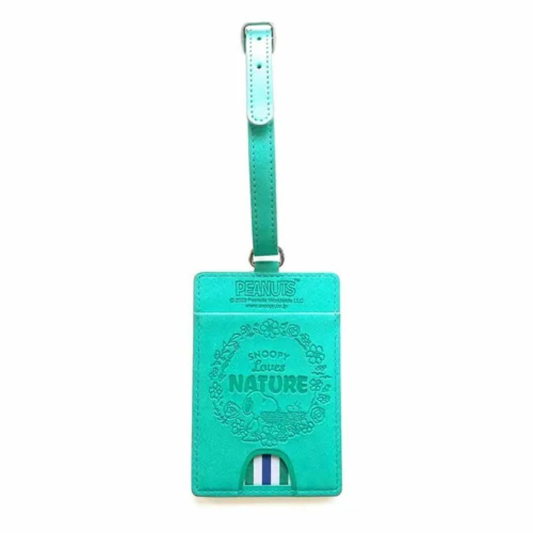 世界中で愛され続けているPEANUTSの人気者スヌーピーが型押しされていてめちゃくちゃかわいいスーツケースやバッグなどに装着できるストラップ付カードホルダーです。