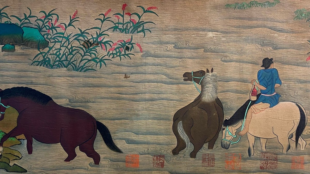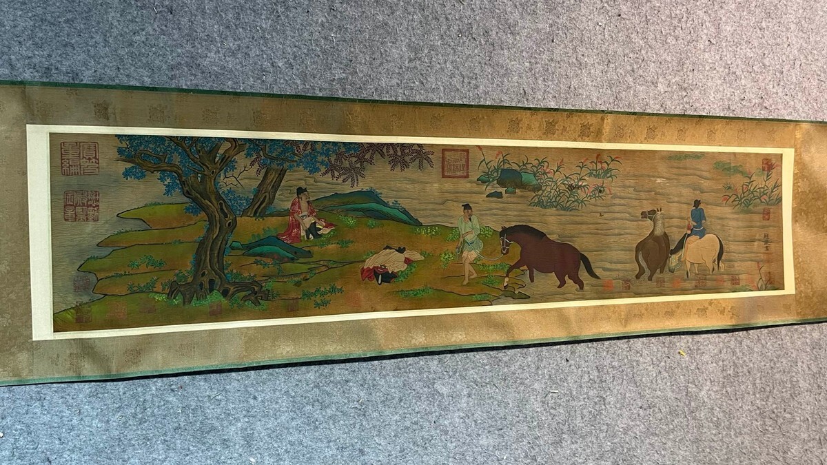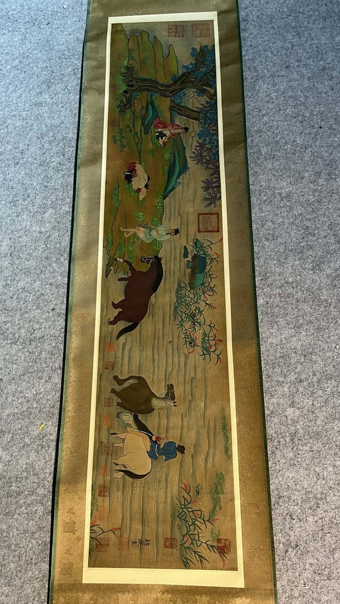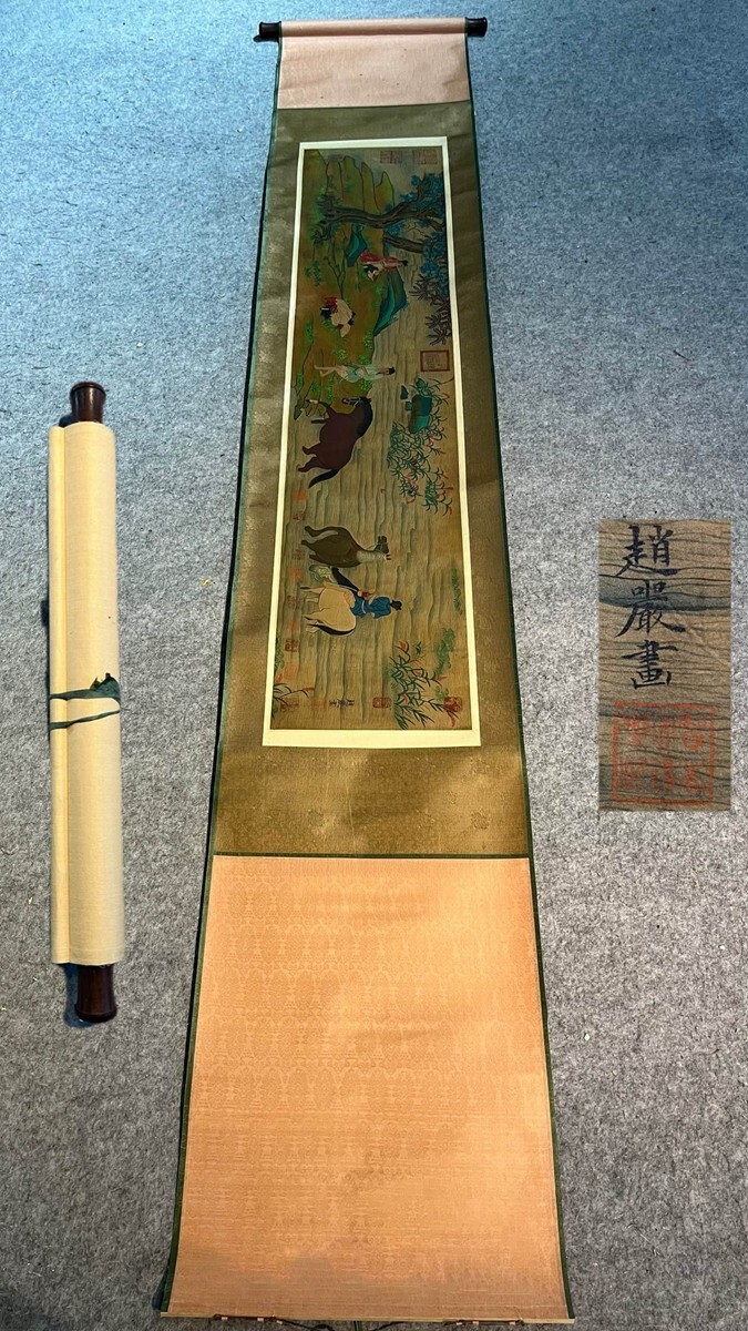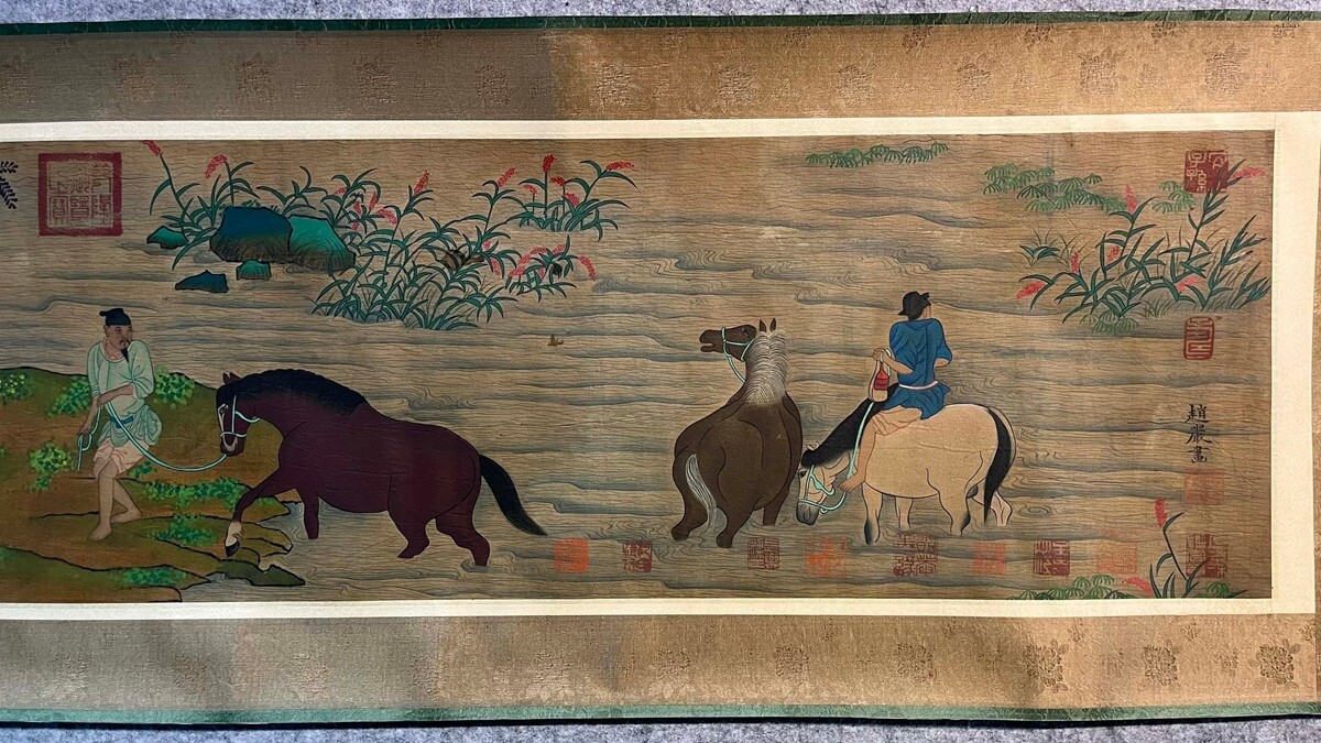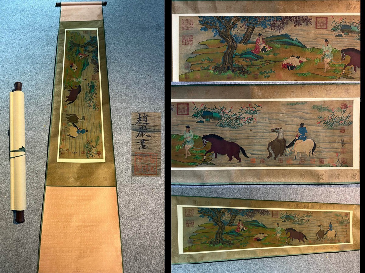 中国書画「東漢 趙儼 人馬図長巻」肉筆紙本 掛け軸 墨寶妙品 書道横軸 巻き物 古美術 旧蔵出