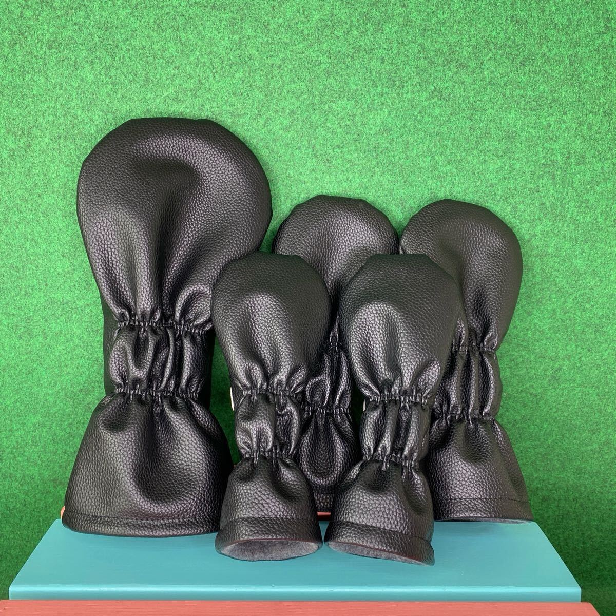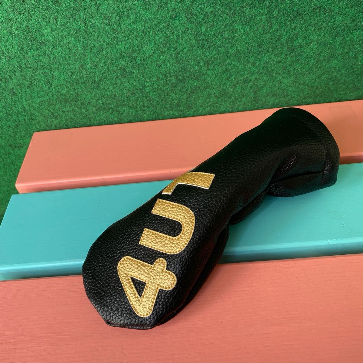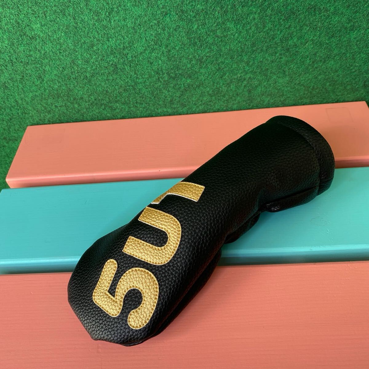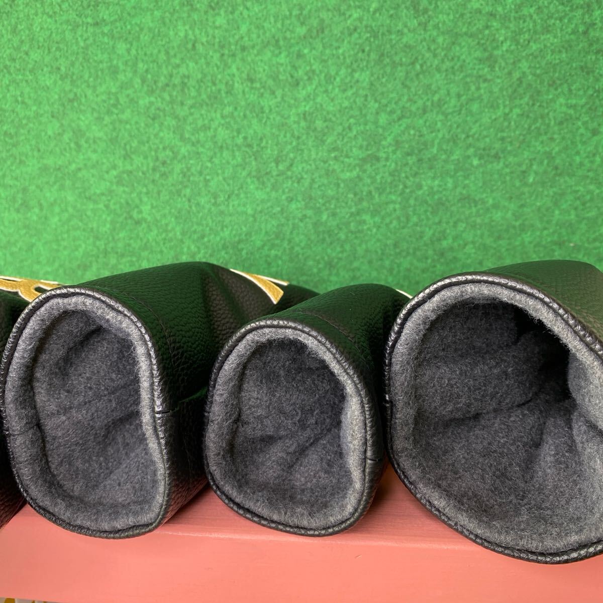 全国送料無料!バラ売り可!【ゴルフクラブ用ヘッドカバー ブラック×ブラック×ゴールド 】ハンドメイド 黒 合皮 フェイクレザー