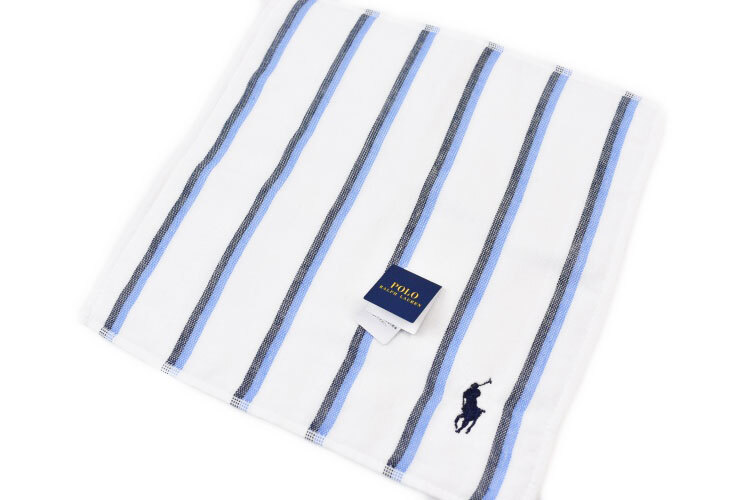 商品説明 | タオルハンカチ 1枚。 サイズ:約 25×25(cm) 色:ホワイト(白) 黒×ブルーストライプ 綿100 ◆メール便 OK |