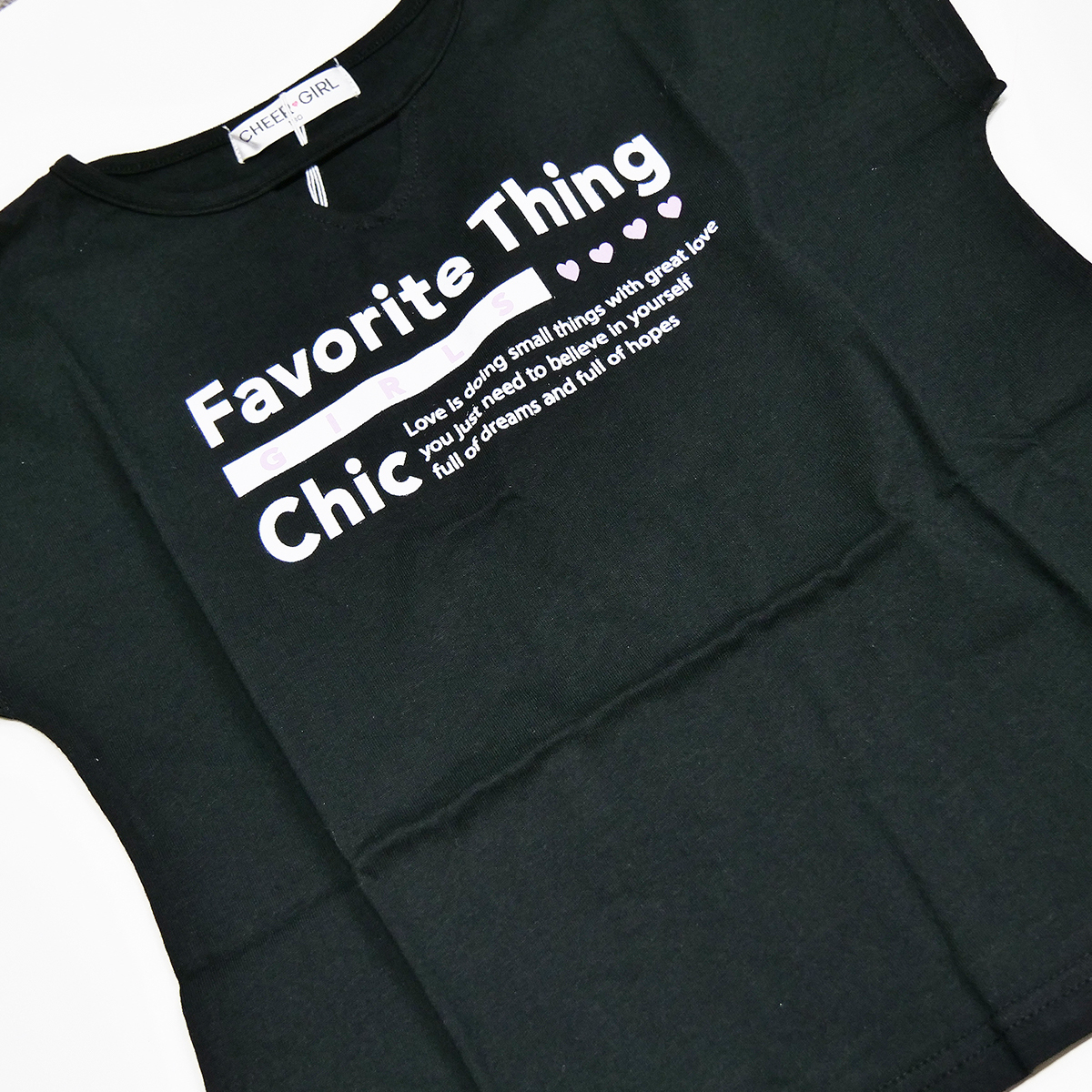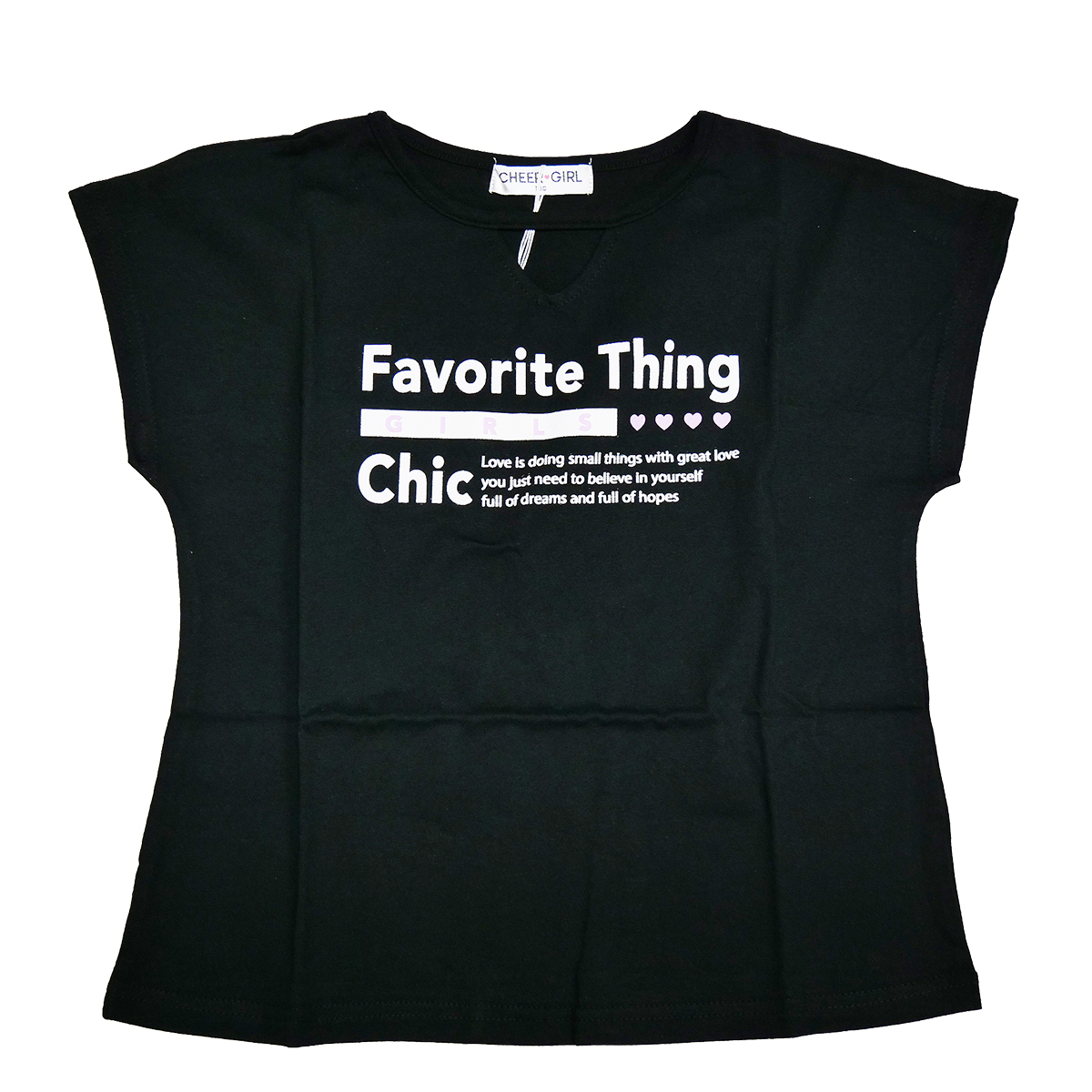新品タグ付き160cm V衿開き半袖Tシャツ ブラック 綿100% オリジナル2502821 女の子 女子小学生