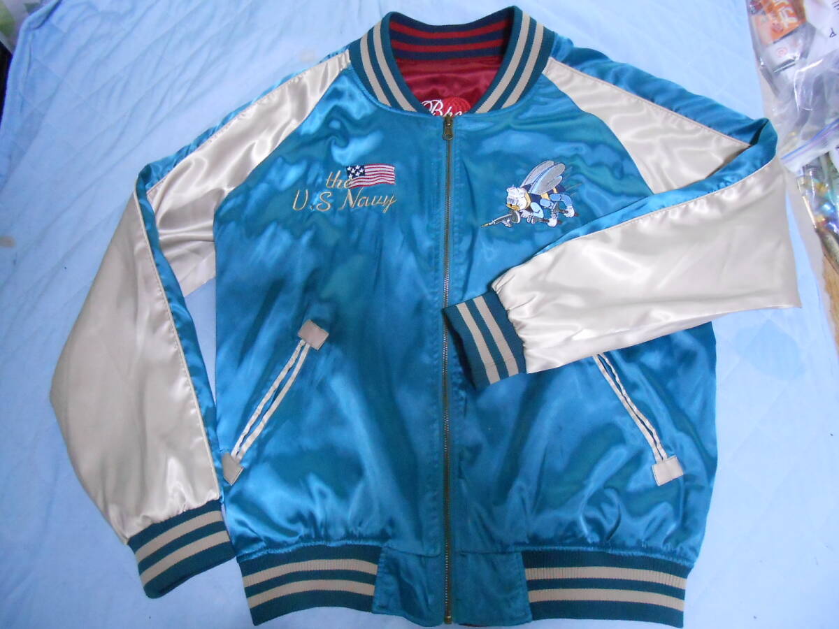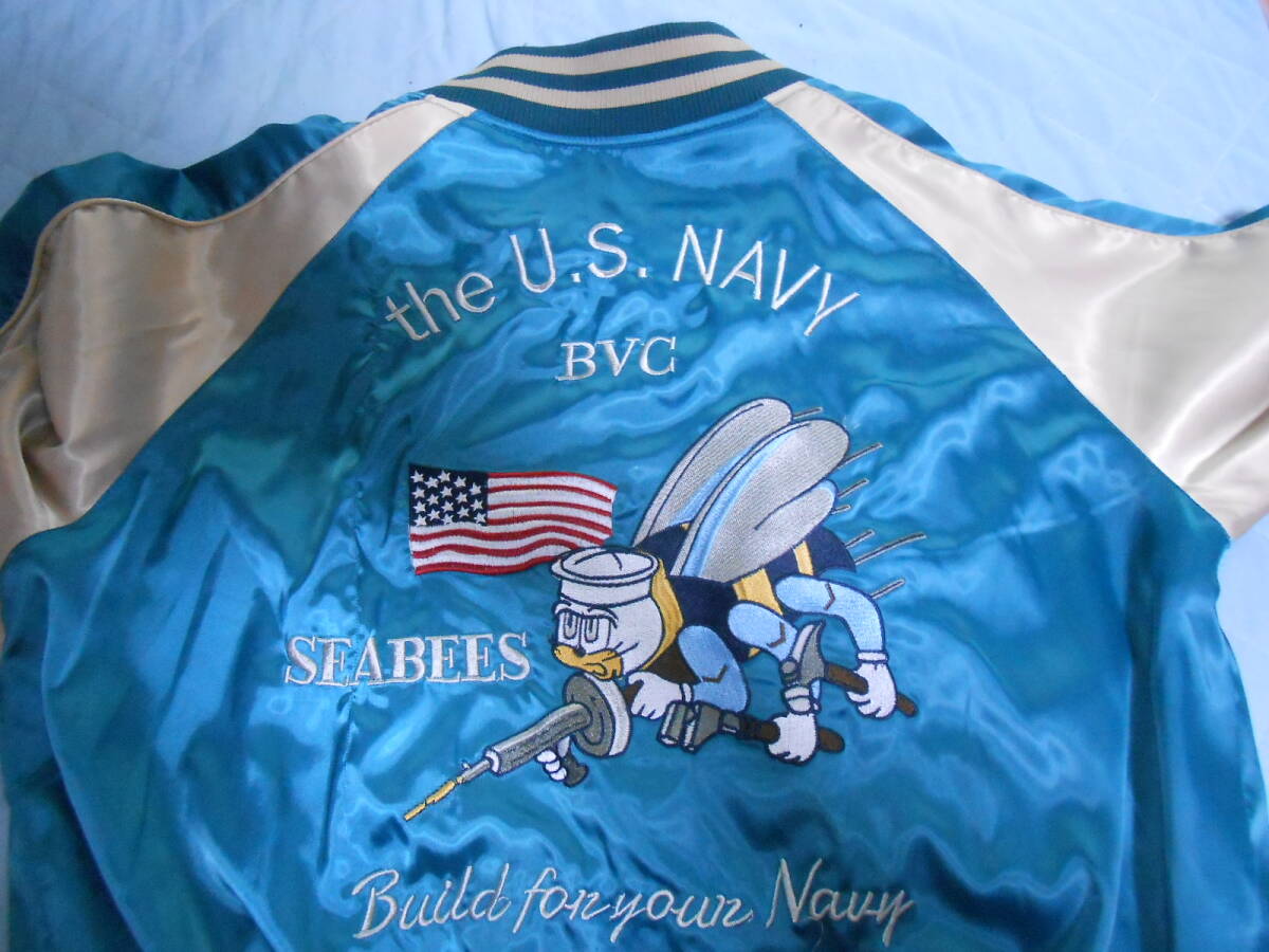 U.S. SEABEES スカジャン 米軍 L リバーシブル 蜂 ビー ミリタリー 緑 青 赤 ビンテージ まだ使える 修理 parts | |