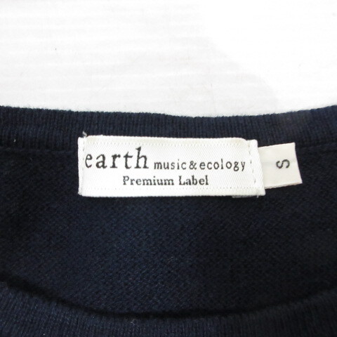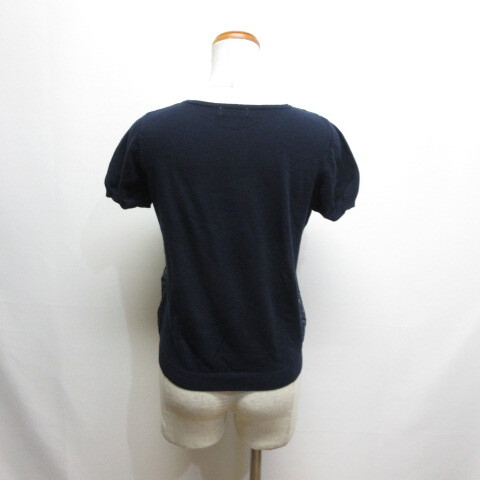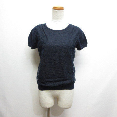 アースミュージック&エコロジー EARTH MUSIC & ECOLOGY レース切替え 半袖 ニット カットソー S ネイビー レディース