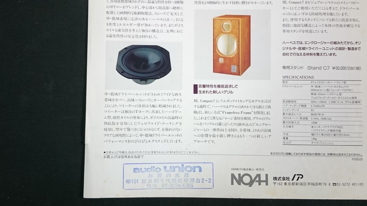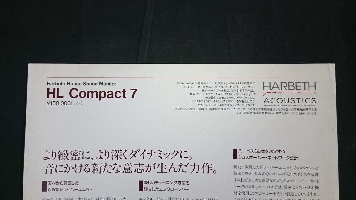 『HARBETH(ハーベス) House Sound Monitor Speaker(モニタースピーカー) HL-Compact 7 カタログ』1995年 NoAH株式会社 | |