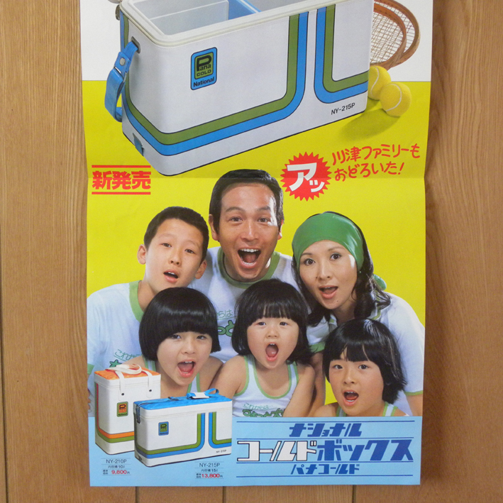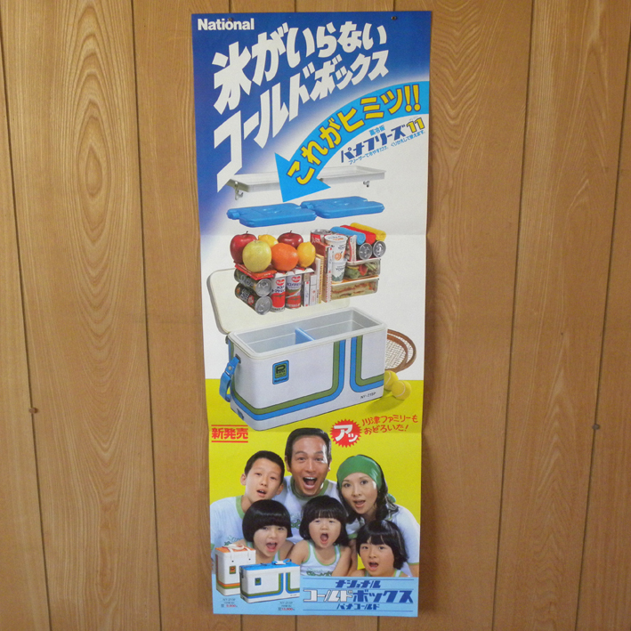 1970年代当時物「ナショナル コールドボックス 川津祐介」のポスターです。サイズは縦約103cm、横約36.5cmです。
