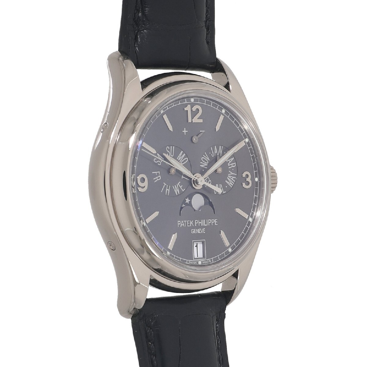 | モデルについて | 日付が2月末~3月1日に切り替わる際のみ、カレンダーを一日進めるだけで、その他の月日・曜日・月齢を自動的に表示する事が出来るアニュアルカレンダーを搭載。アニュアルカレンダーは1996年に発表され様々なモデルに採用されています。月日と曜日を表示できるカレンダー、月の満ち欠けを知る事が出来るムーンフェイズ、ゼンマイの持続時間を確認できるパワーリザーブなど多くの機能を有しながらも、バランスの取れた端正なフェイスが人気のコレクションです。ムーブメントは信頼性の高いCal.324をベースに開発されました。多くの支持を得たRef.5035などの名機の後継機となるたRef.5146は、ケース径が現代的な39ミリへと大型化され2015年に誕生しました。 |