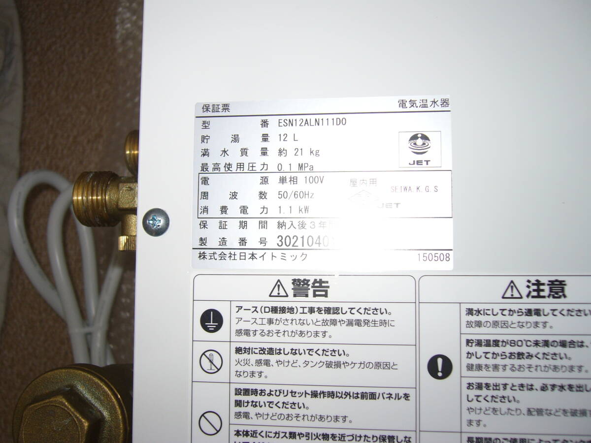 【美品】 iTomic イトミック 電気温水器 ESN12ALN111D0 (100V) 12L  です。定価¥113,300 の品です。