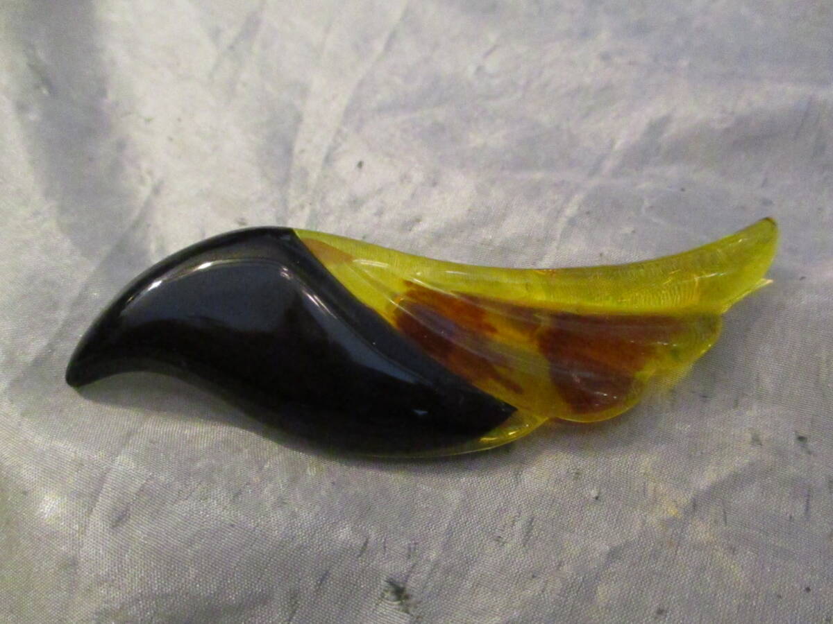 | □本鼈甲 べっ甲 羽モチーフ ブローチ 横幅9,5cm 新品未使用②□ | |||||||||||