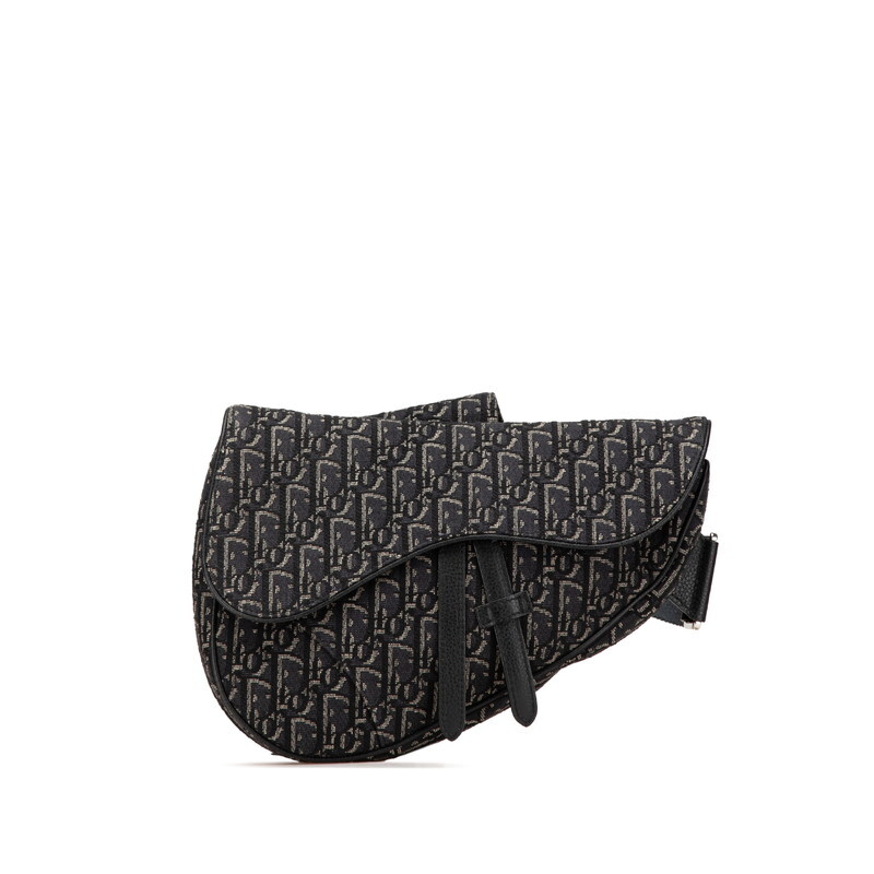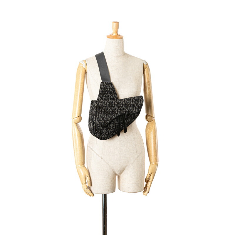 ディオール オブリーク サドルバッグ ボディバッグ ショルダーバッグ ブラック キャンバス レザー メンズ Dior 【中古】