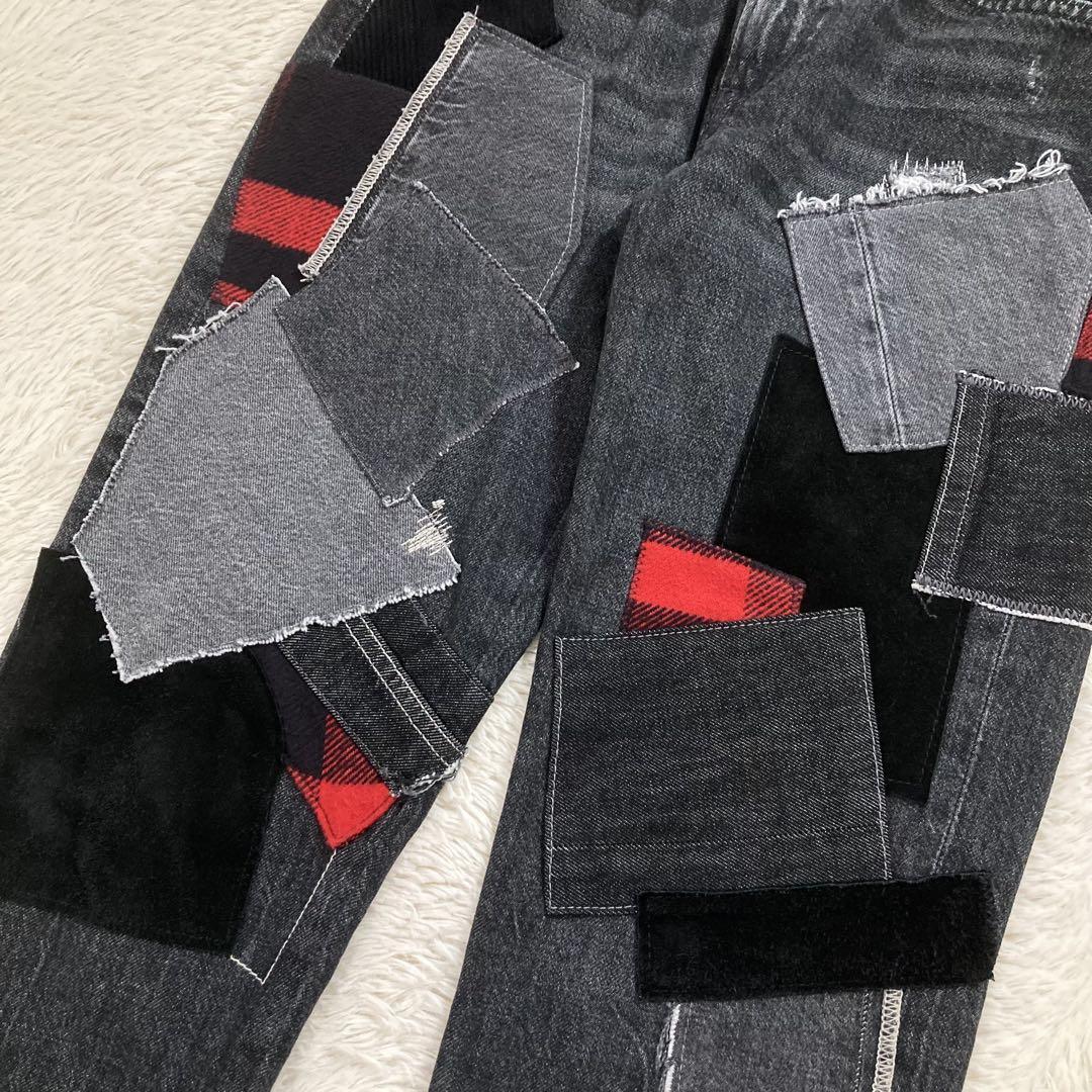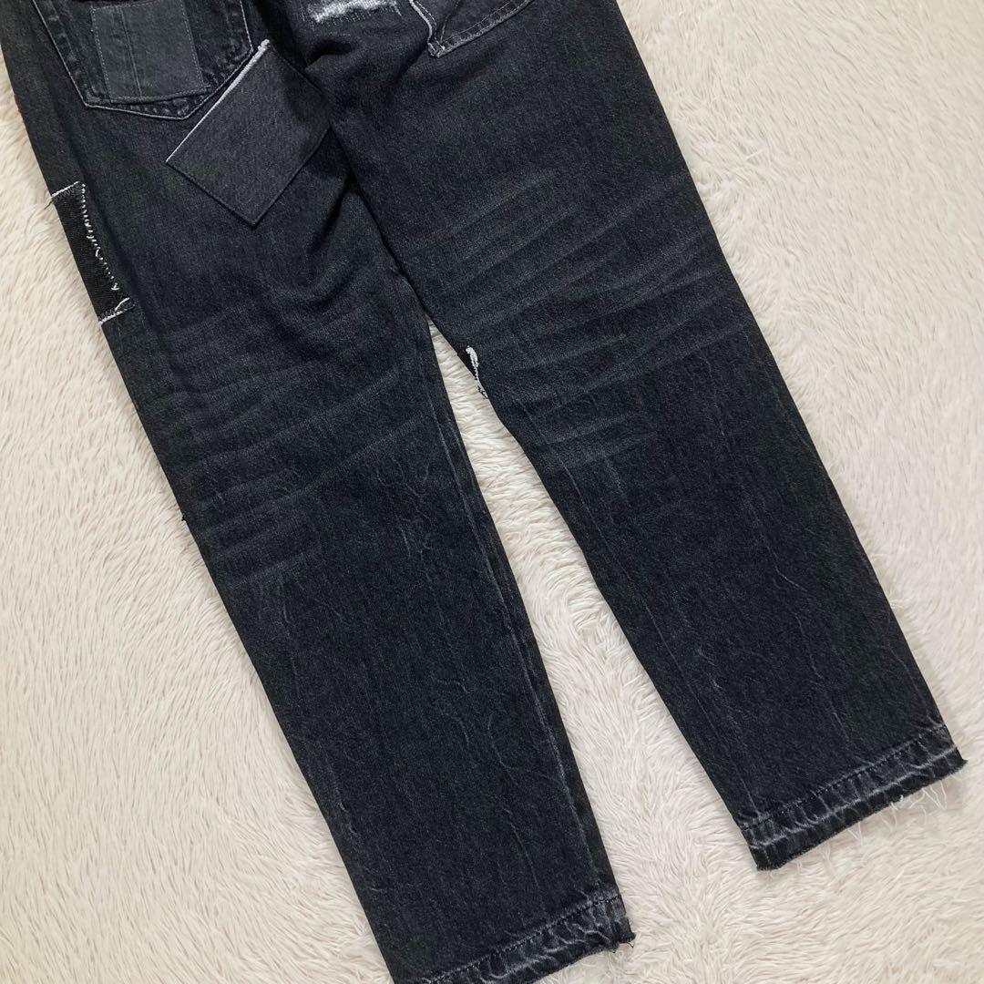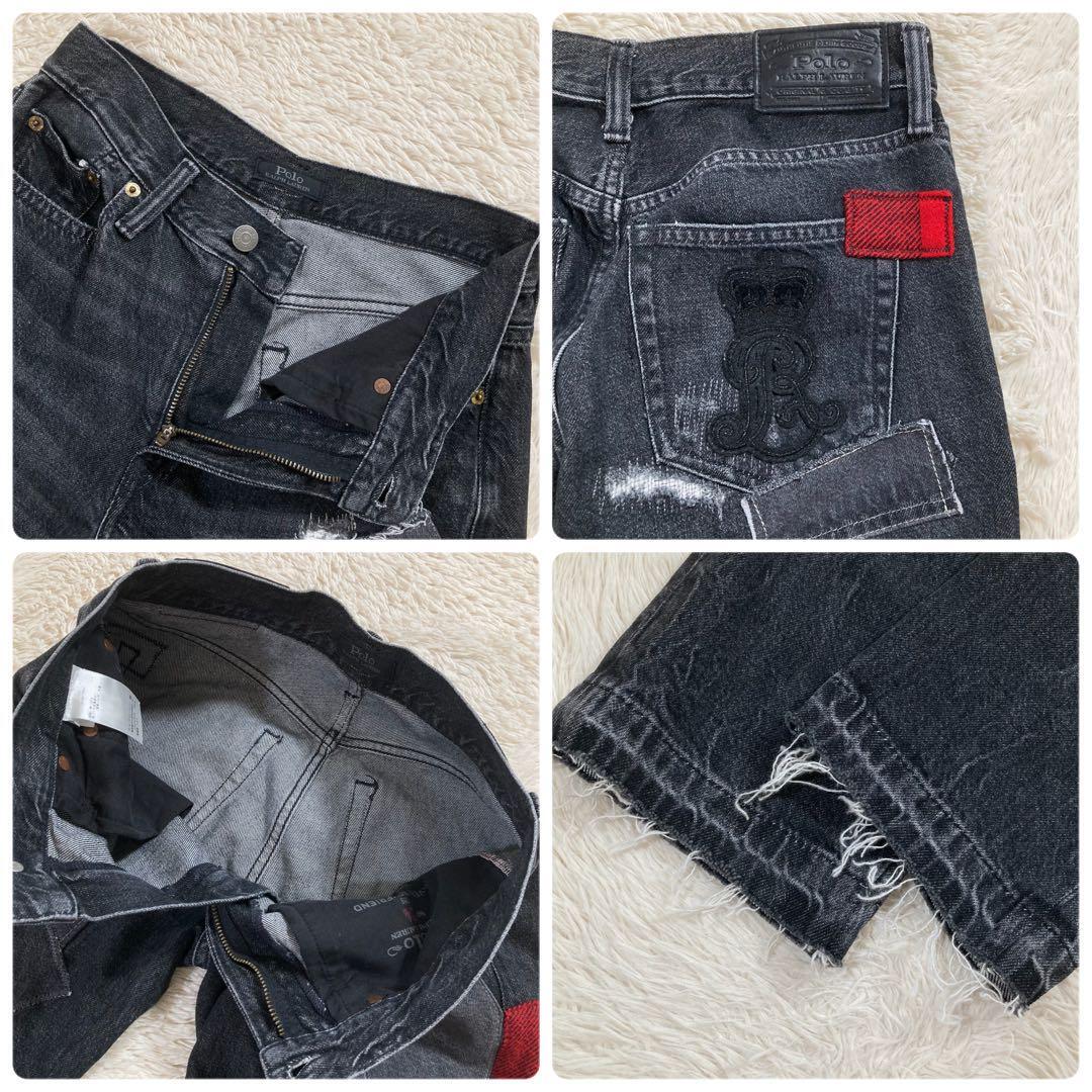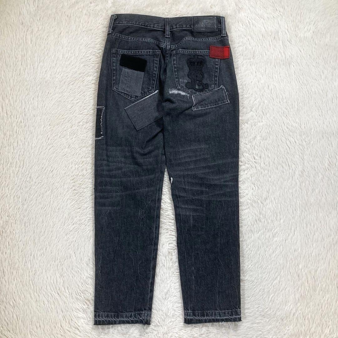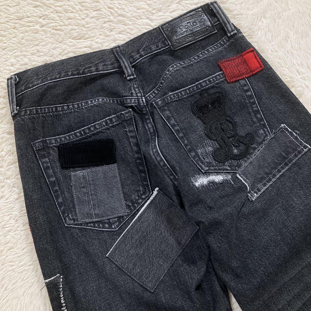 POLOロゴ パッチワーク ダメージ加工 ウォッシュド加工 ヴィンテージ加工 カットオフ クロップド丈 ストレート スキニー ボトムス 定価約5.5万円