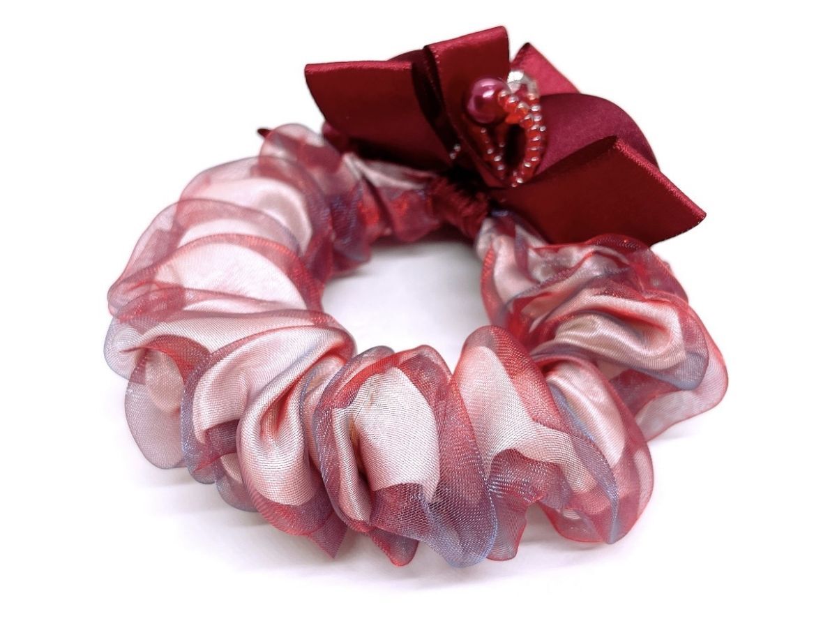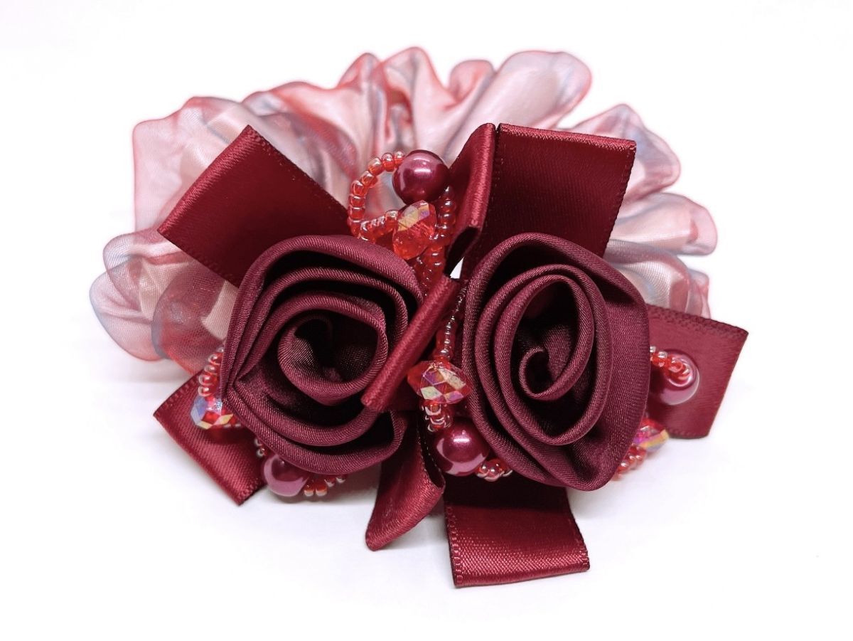 送料140円!同梱OK!取置2週間。(*^^☆彡*ハンドメイドシュシュ*ヘアゴム*お花*フラワー*ビーズ*デザイン*A92*即決!