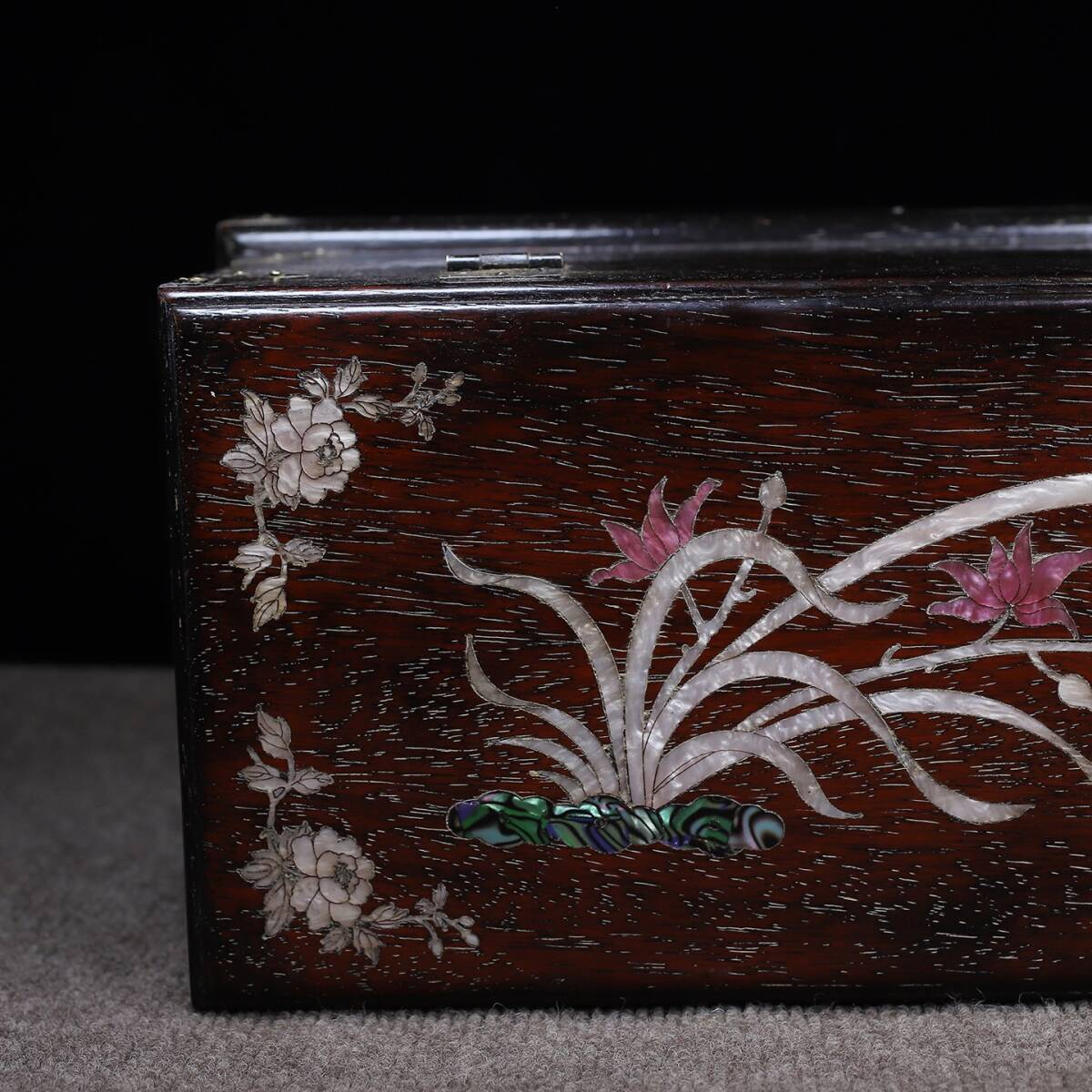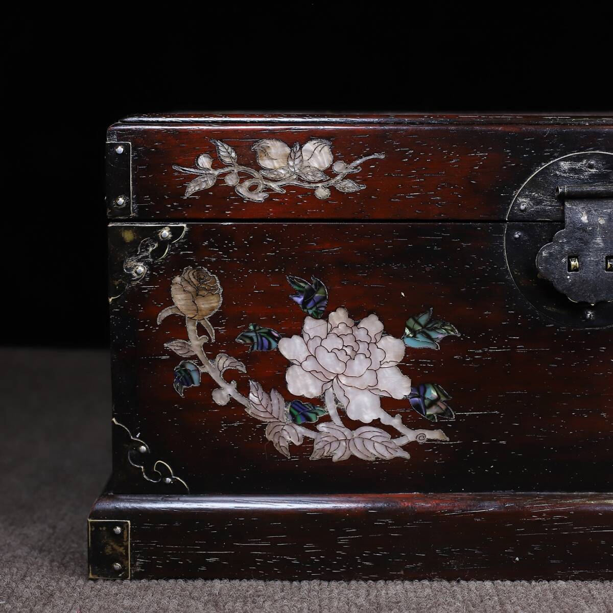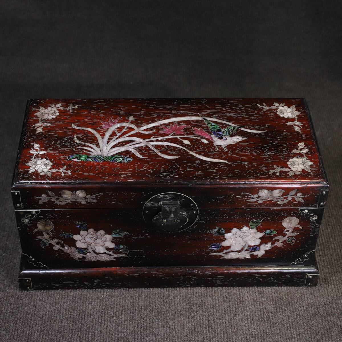*珍品旧蔵* 清 紫檀木 はめ込む貝殼 多寶盒 收納盒 木製 極細工中国古玩 骨董品 古美味 H45