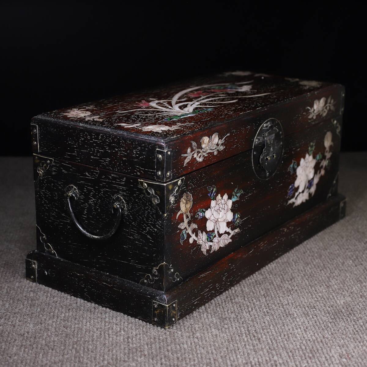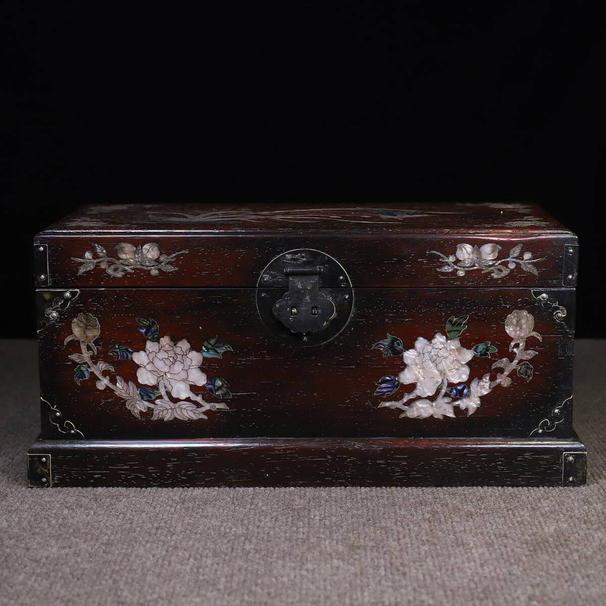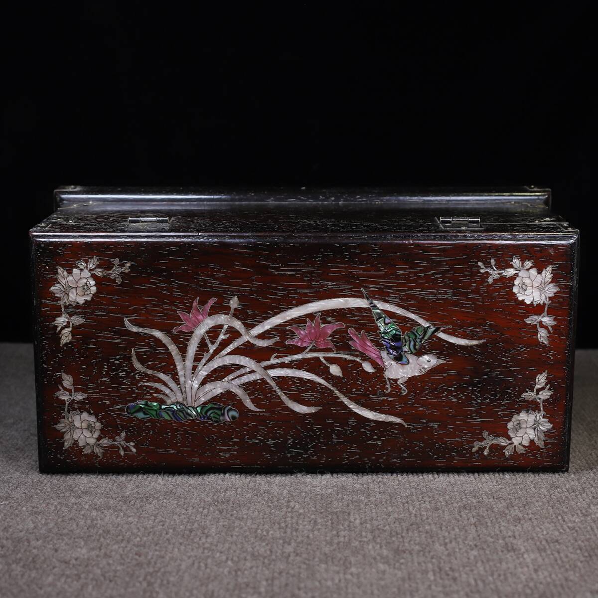 *珍品旧蔵* 清 紫檀木 はめ込む貝殼 多寶盒 收納盒 木製 極細工中国古玩 骨董品 古美味 H45