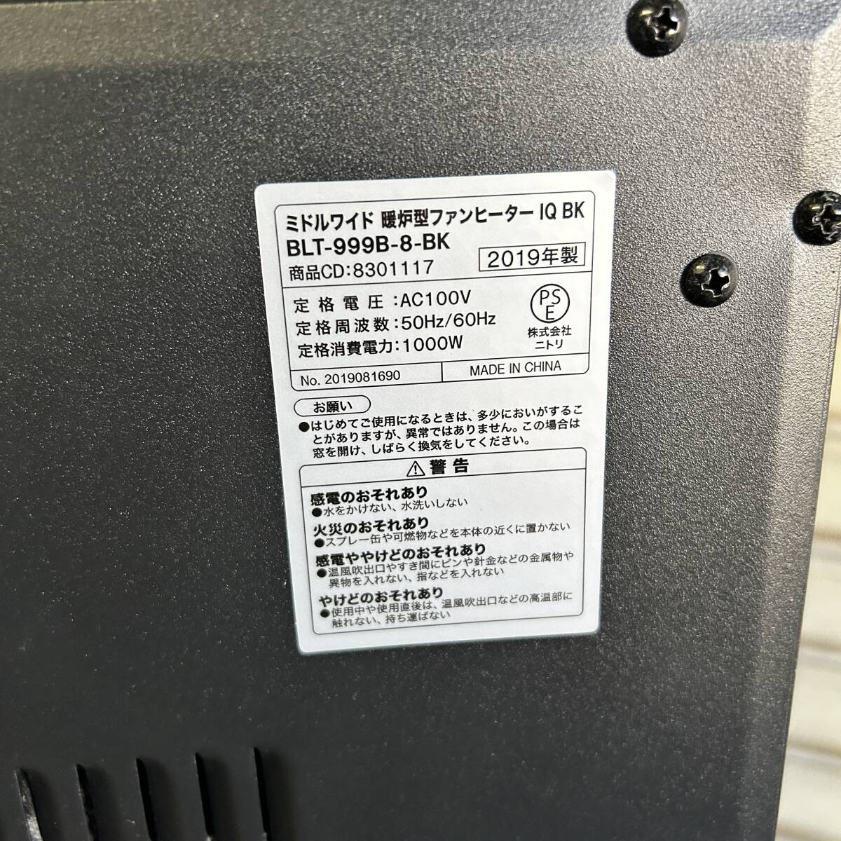 CE135 ★ニトリ★ 2019年製 ファンヒーター ミドルワイド 暖炉型 BLT-999B-8-BK